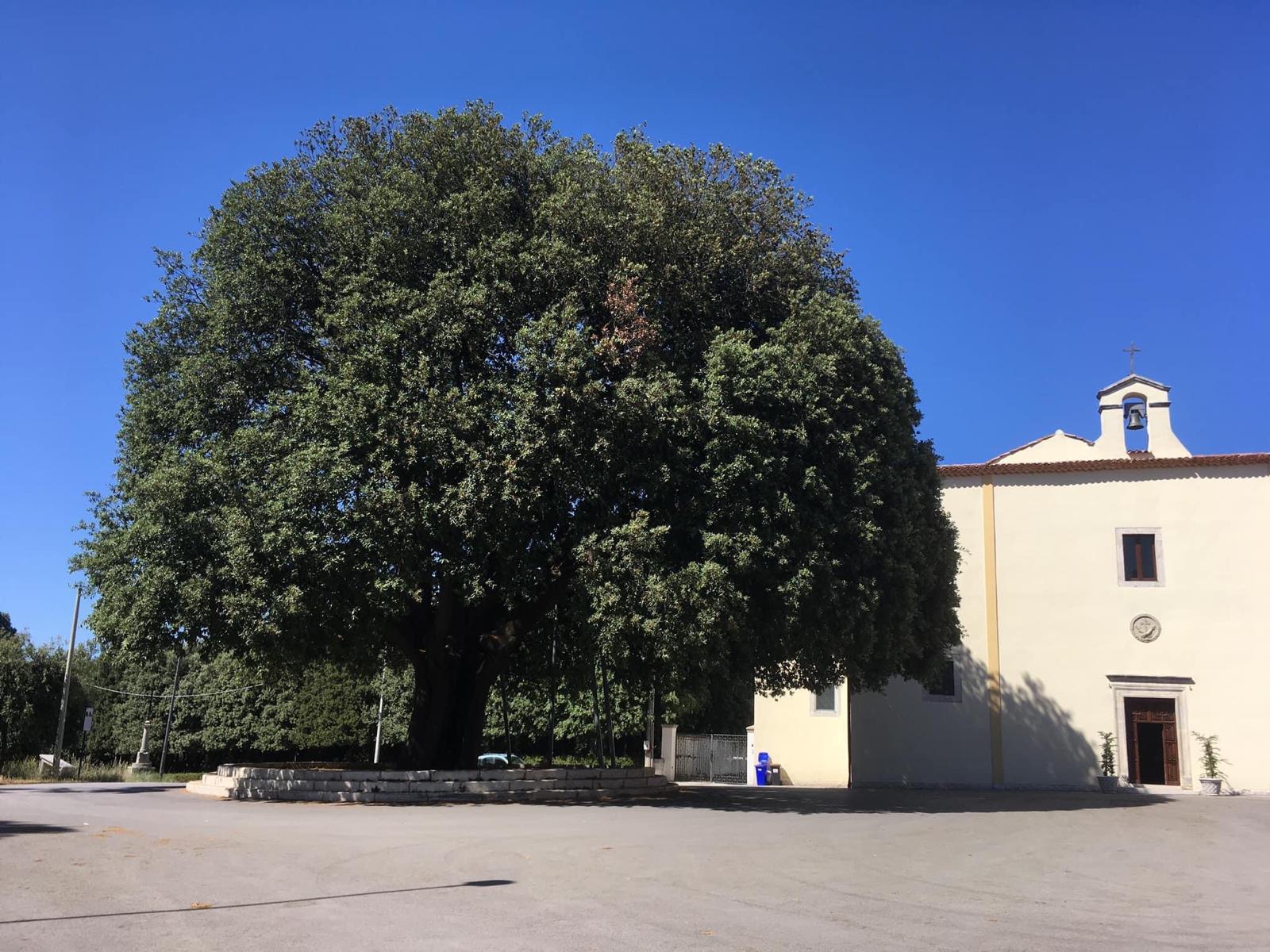 "Fra Nicola da Vico del Gargano , cappuccino , avendo trovato una piccola pianta di elce vicino a un abbeveratoio, la trapiantò al centro del piazzale del convento facendola benedire dal padre guardiano. Non si conosce la data esatta del fatto ; si sa, tuttavia, che Fra Nicola morì nel 1719 in età avanzata. Si può dedurre quindi che il leccio abbia circa tre secoli di vita. Il tronco misura quasi cinque metri di circonferenza e la chioma ha più volte raggiunto i cinquanta metri . Nel 1934 , a causa della neve e di una forte tempesta , cadde un grosso ramo che lasciò nell'albero un ampio vuoto tuttora visibile. Fu allora necessario imbrigliare i rami con grossi tiranti di ferro. L'Amministrazione comunale, allo scopo di preservare per il futuro questo esemplare unico, nell'ottobre del 1995, avvalendosi del Prof. Alessandro Chiusoli dell'Università di Bologna , provvedeva a nuova sistemazione .