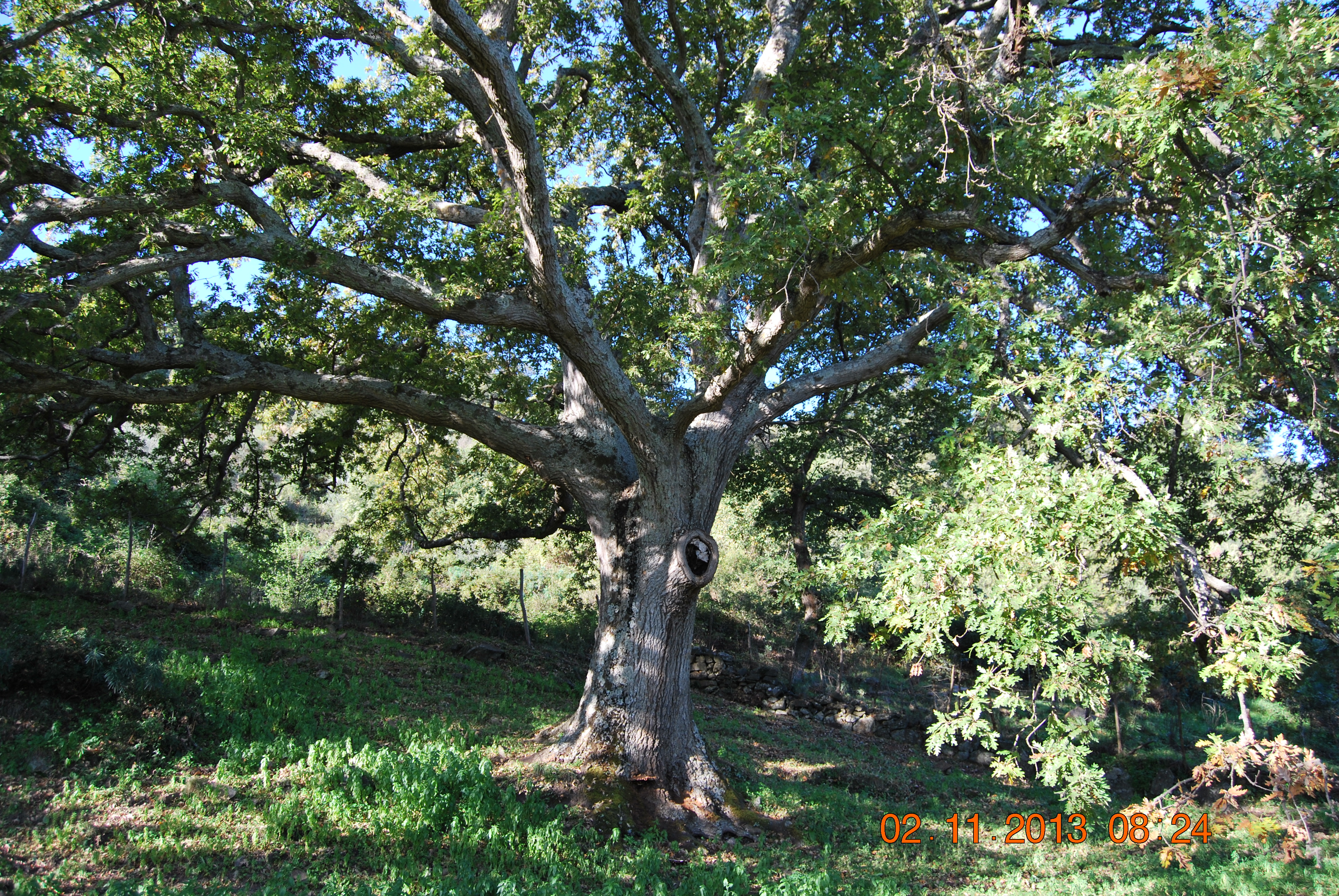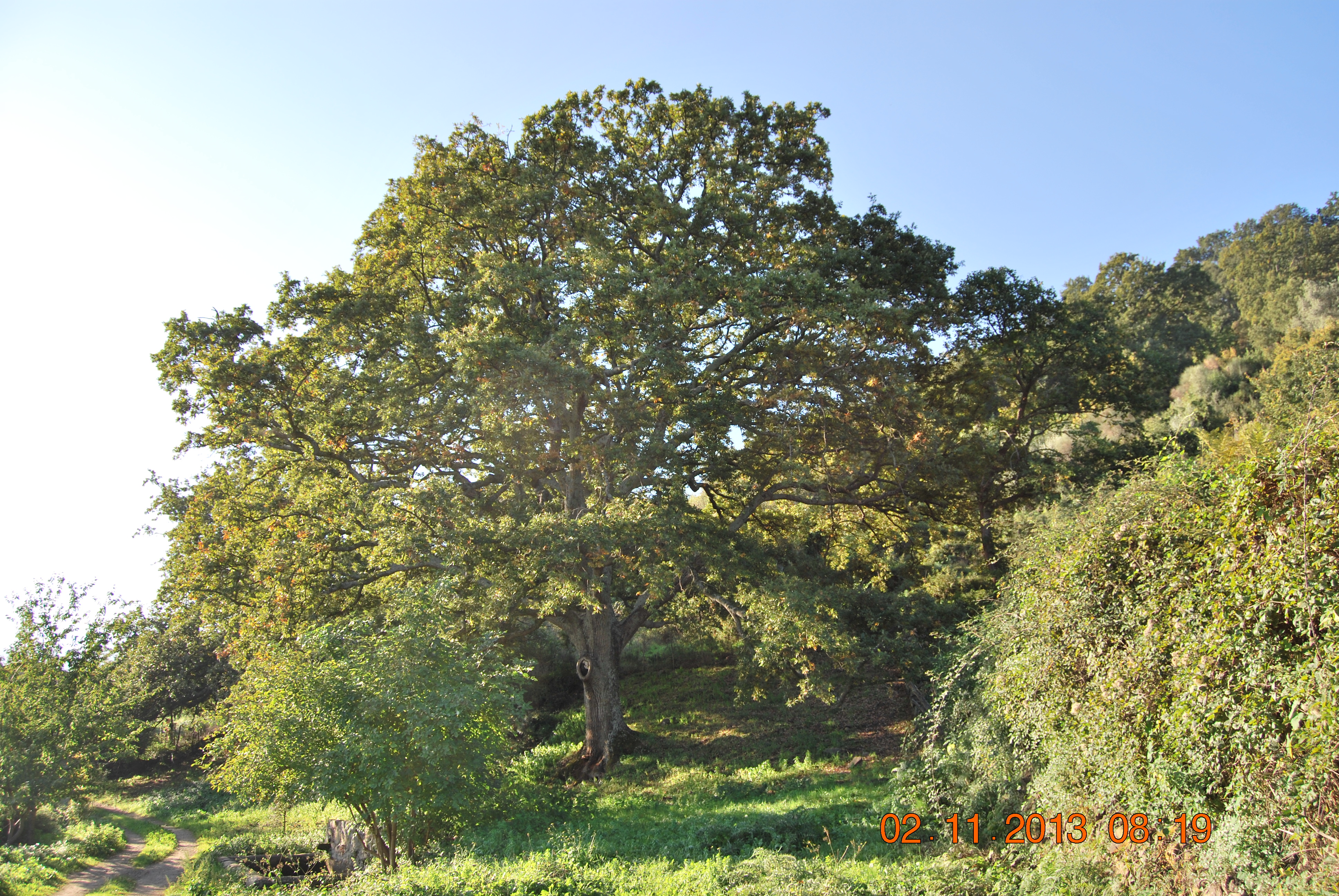Questo albero non esiste più da 4 anni, morto per la carie o perchè tagliato? rimane il dubbio sulla specie di appartenenza, se si trattasse di ibrido come dice il libro, tra Q.gussonei e Q.suber (Quercus x fontanesii), di un Cerro, o di Quercus fontanesii, una specie a parte secondo altri autori