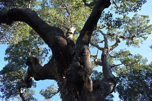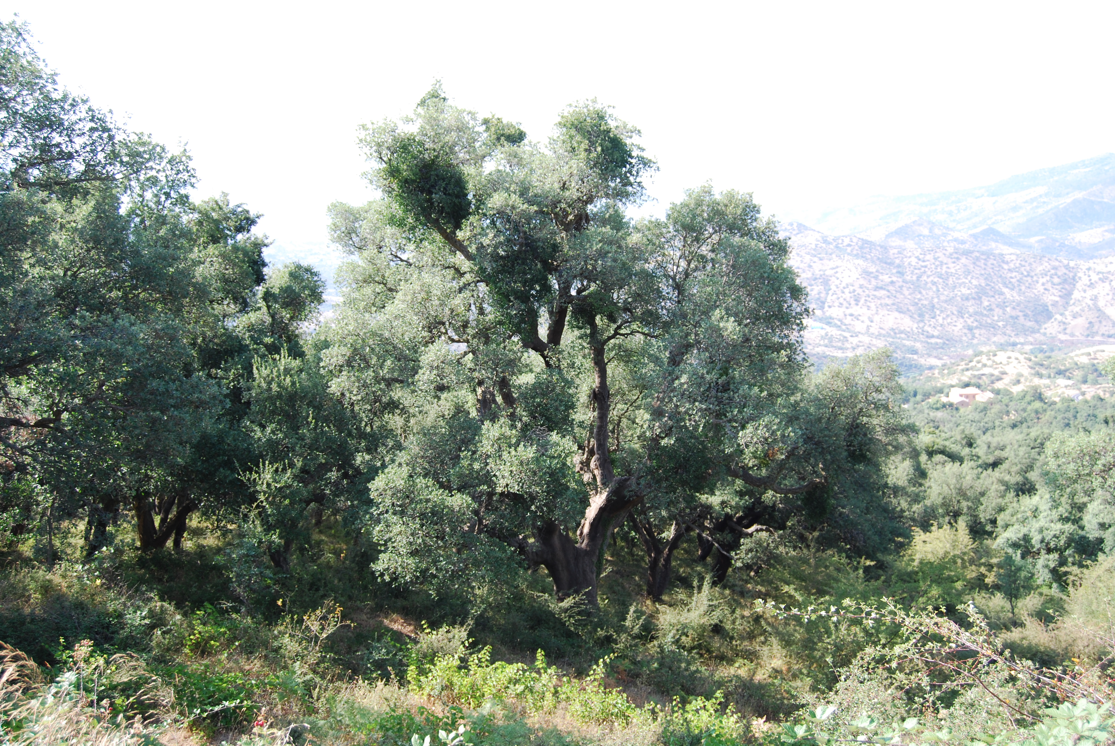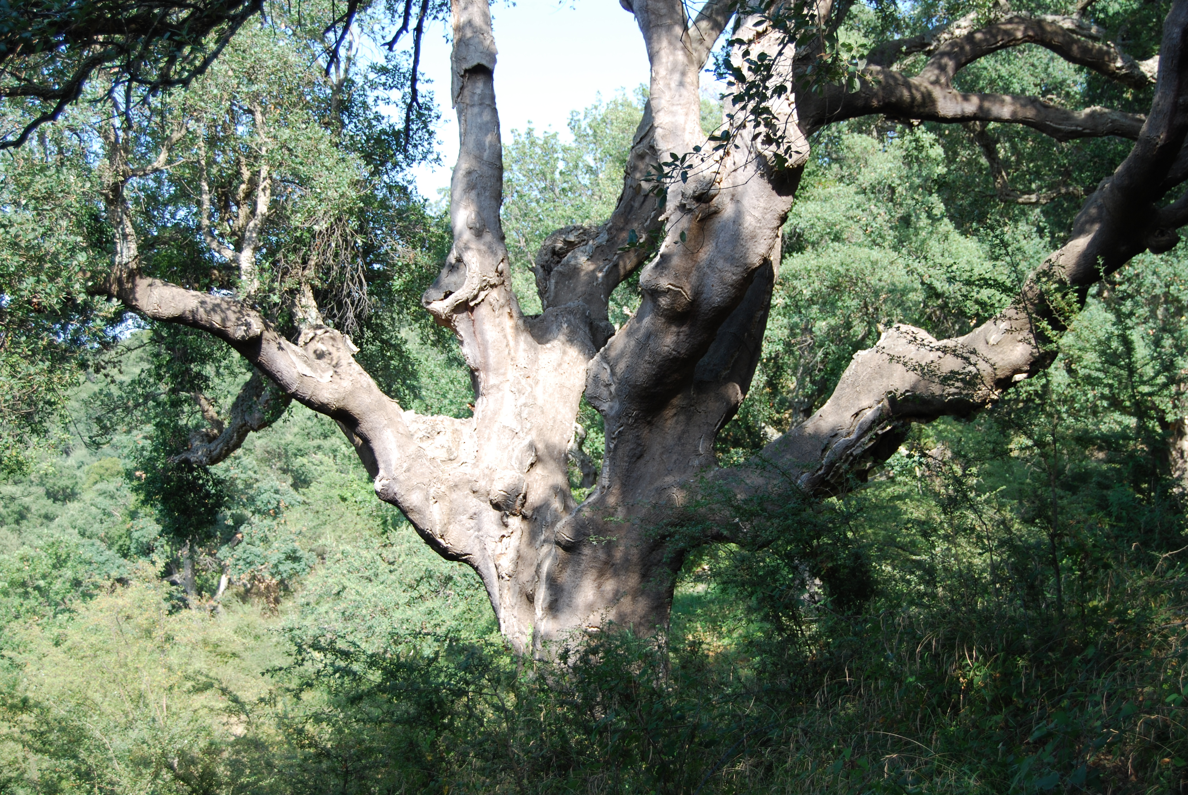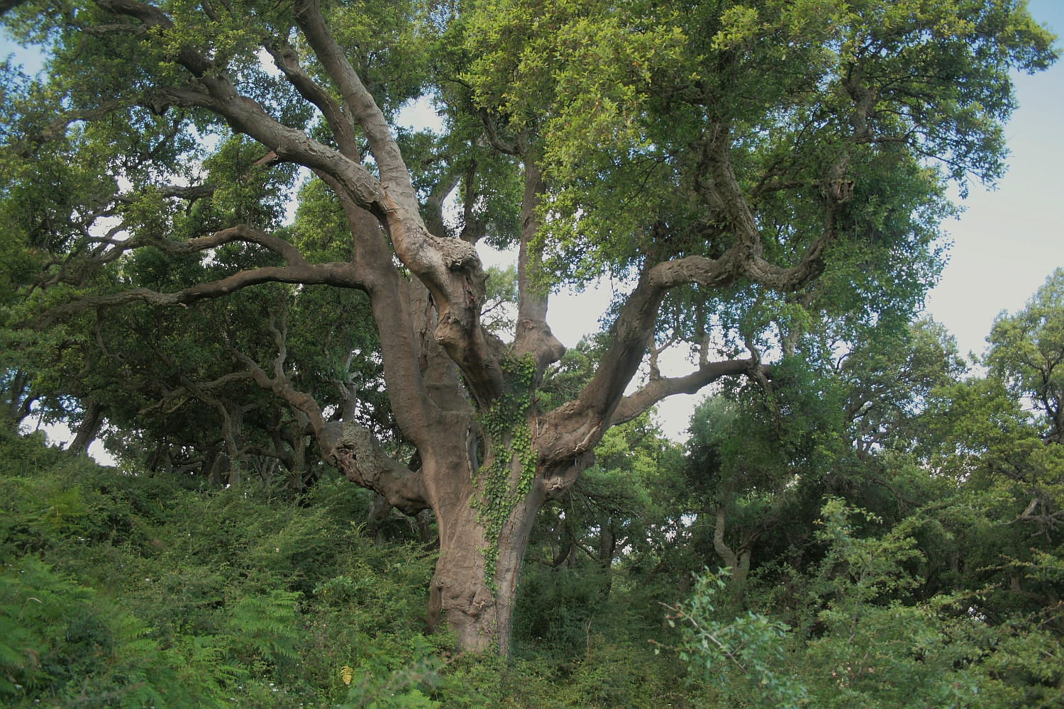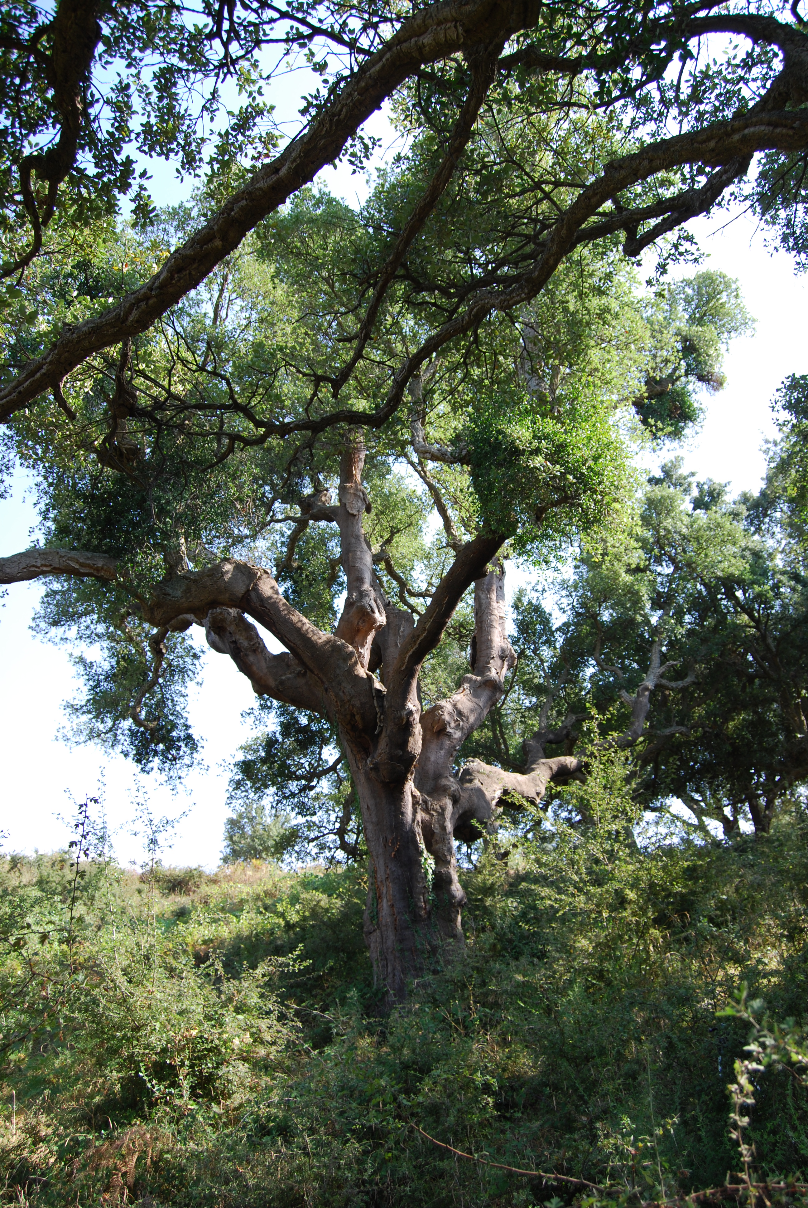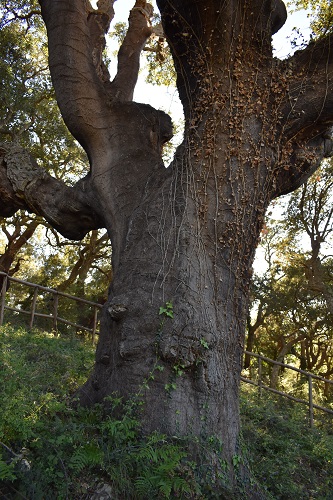 Bell'esemplare con fusto assai robusto, leggermente inclinato verso il lato a valle, portamento espanso; la chioma è formata da due grosse branche che si innestano a circa due metri e mezzo dal suolo, ciascuna poi si suddivde in rami di notevole spessore, sinuosi e un po' contorti, che si sviluppano notevolmente anche in ampiezza, per cui la chioma raggiunge un raggio di oltre venti metri. La pianta è stata interessata da attacchi di Loranthus europaeus (pianta parassita simile al vischio) e soggetta ad interventi di cura e manutenzione finalizzati a preservarne le condizioni di salute e lo stato vegetativo.