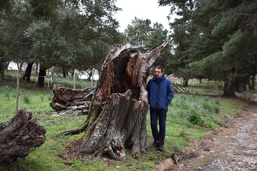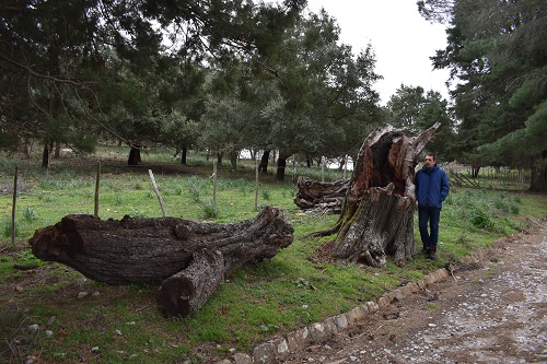Purtroppo questo meraviglioso Perastro è morto, e le sue branche principali giacciono ancora a terra, vicino al grosso tronco. Alla base, lato monte, si notano dei piccoli polloni, a dimostrazione che le sue radici sono ancora vive...A petto d'uomo, ciò che rimane del suo tronco, misura 2,77 m
