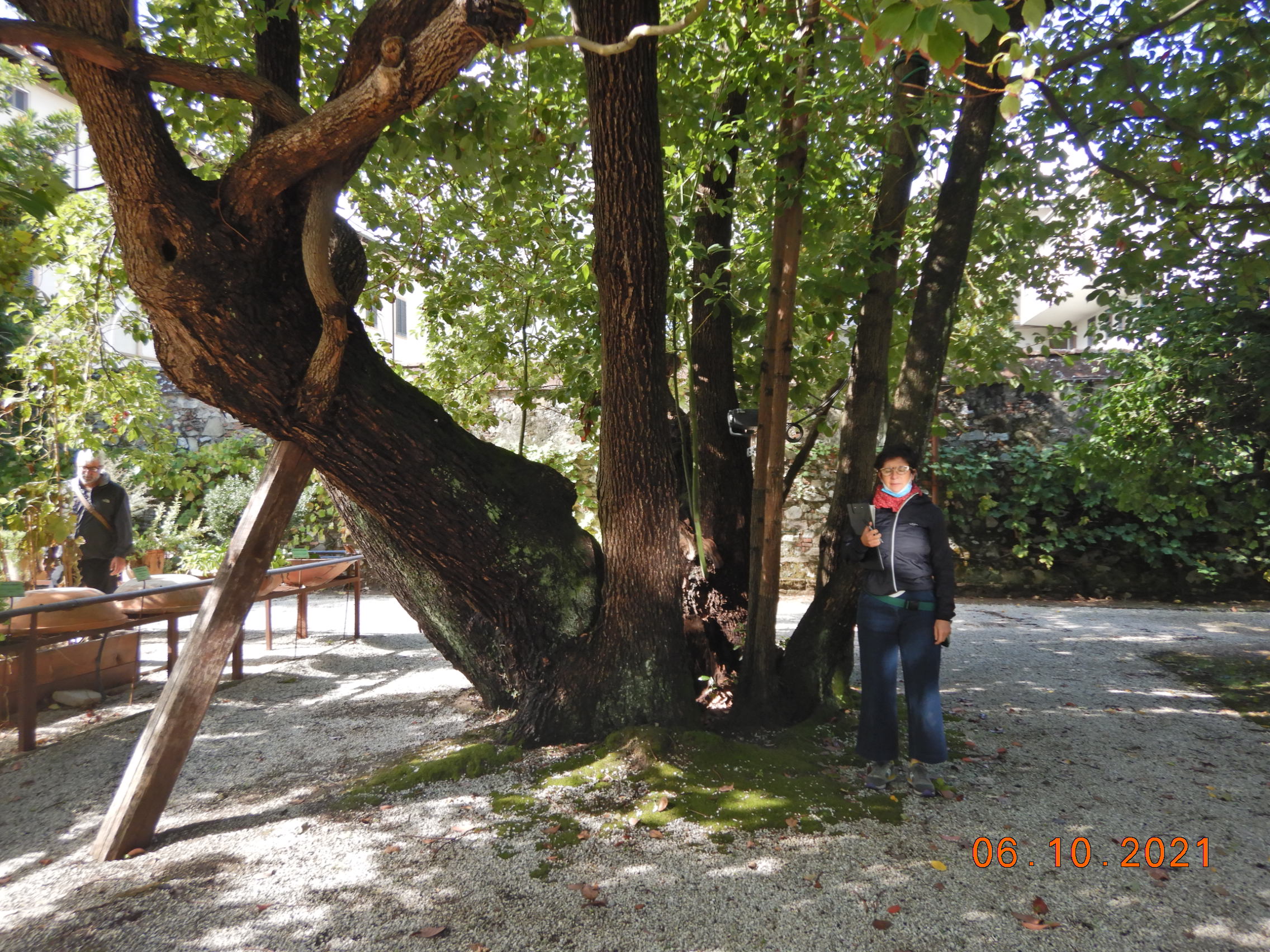 Il Falso Canforo dell'Orto botanico è una grande ceppaia policormica, cava all'interno e circoscritta da una corona esterna formata da 7 polloni principali e giovani riscoppi. Alla base presenta una circonferenza di 795 cm mentre il pollone più grande ha una circonferenza di 207 cm. Si descrive un'ampia cavità basale centrale risalente all'interno dei fusti più vecchi stampellati e divergenti dall'asse centrale. Se si comprendono tutti i polloni a 130 cm da terra la circonferenza è superiore a 10 m. Fonti bibliografiche riportano come data d'impianto il 1888, momento in cui era direttore dell'Orto botanico il Prof. Cesare Bicchi. La chioma espansa presenta un buon vigore vegetativo ma ha subito riduzioni in seguito a gravi danni da gelo quando nel gennaio del 1985, proprio all'interno dell'Orto botanico, la temperatura minima scese a -13,5°C . La vitalità della pianta è comunque evidenziata dalla presenza di giovani riscoppi.