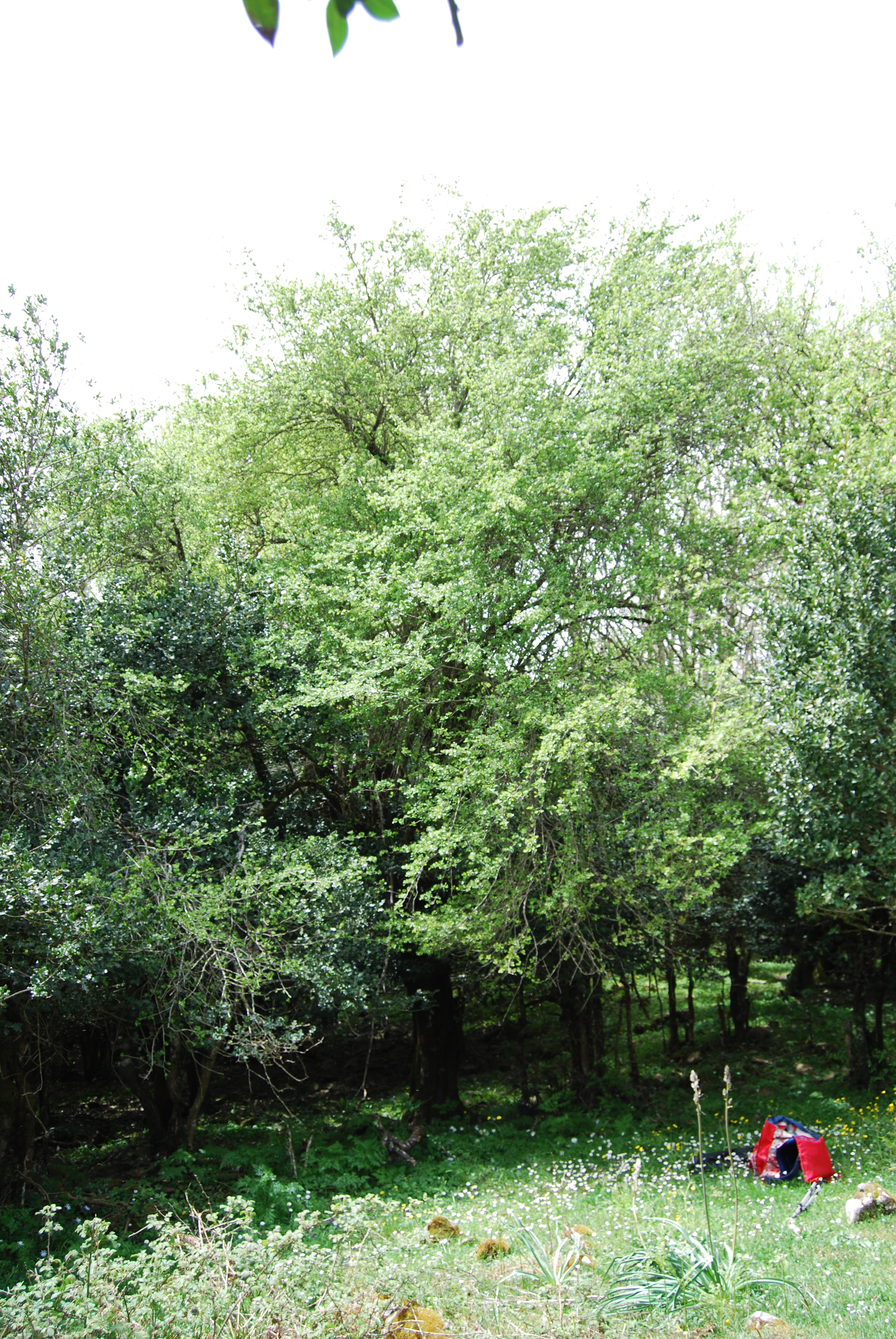 Un esemplare di Biancospino slanciato, molto alto, nel fitto della vegetazione del Bosco monumentale di Contrada Cerasa