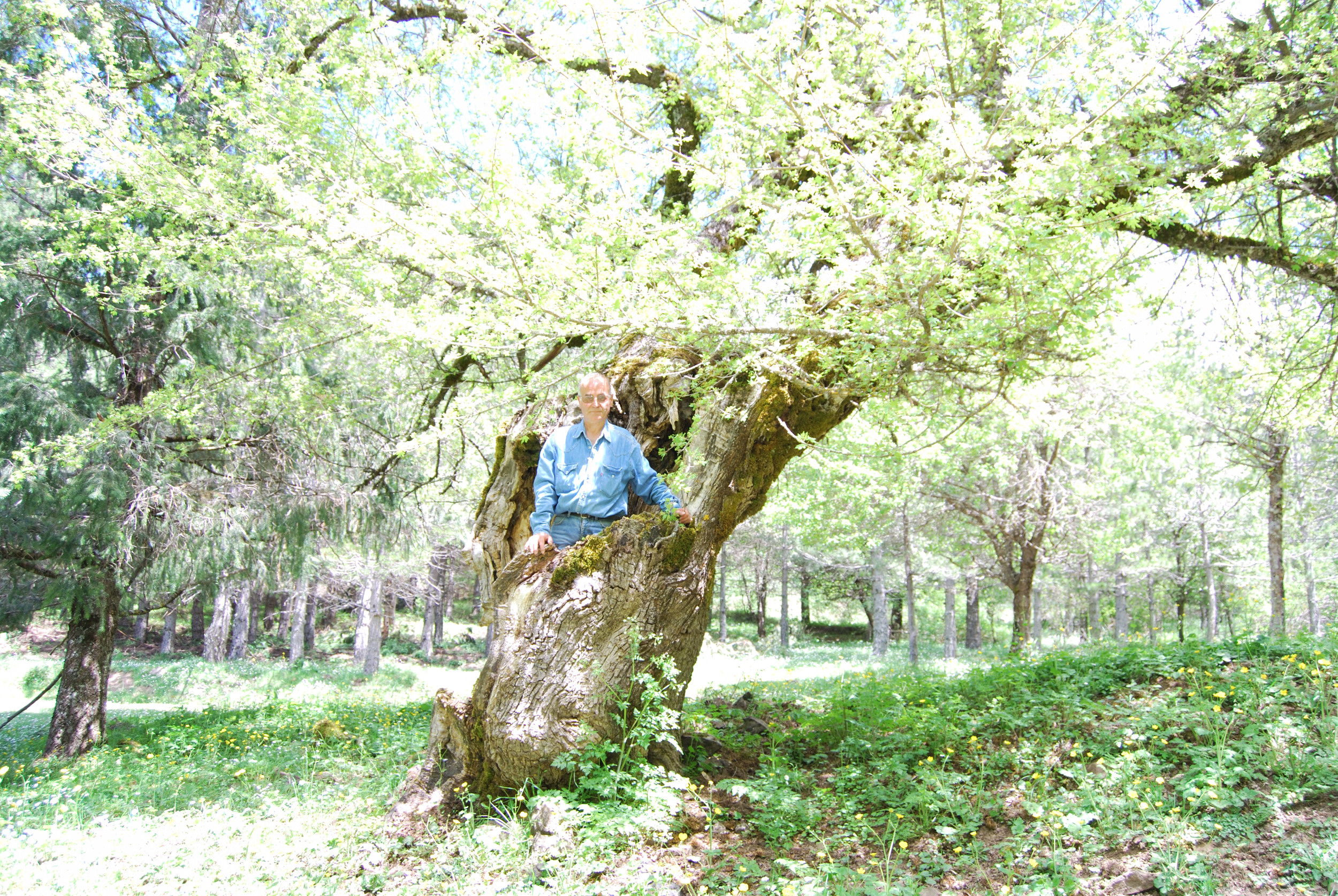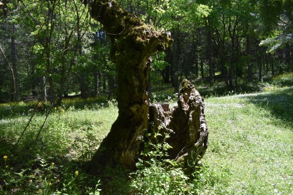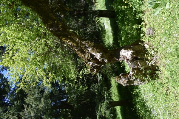 Vecchio Acero campestre, cavo lato valle, con due branche lato monte. Rivisto giorno 19 maggio 2025. Le sue condizioni sono peggiorate, la seconda branca non c'è più e la parte secca del tronco si è ulteriormente ridotta
