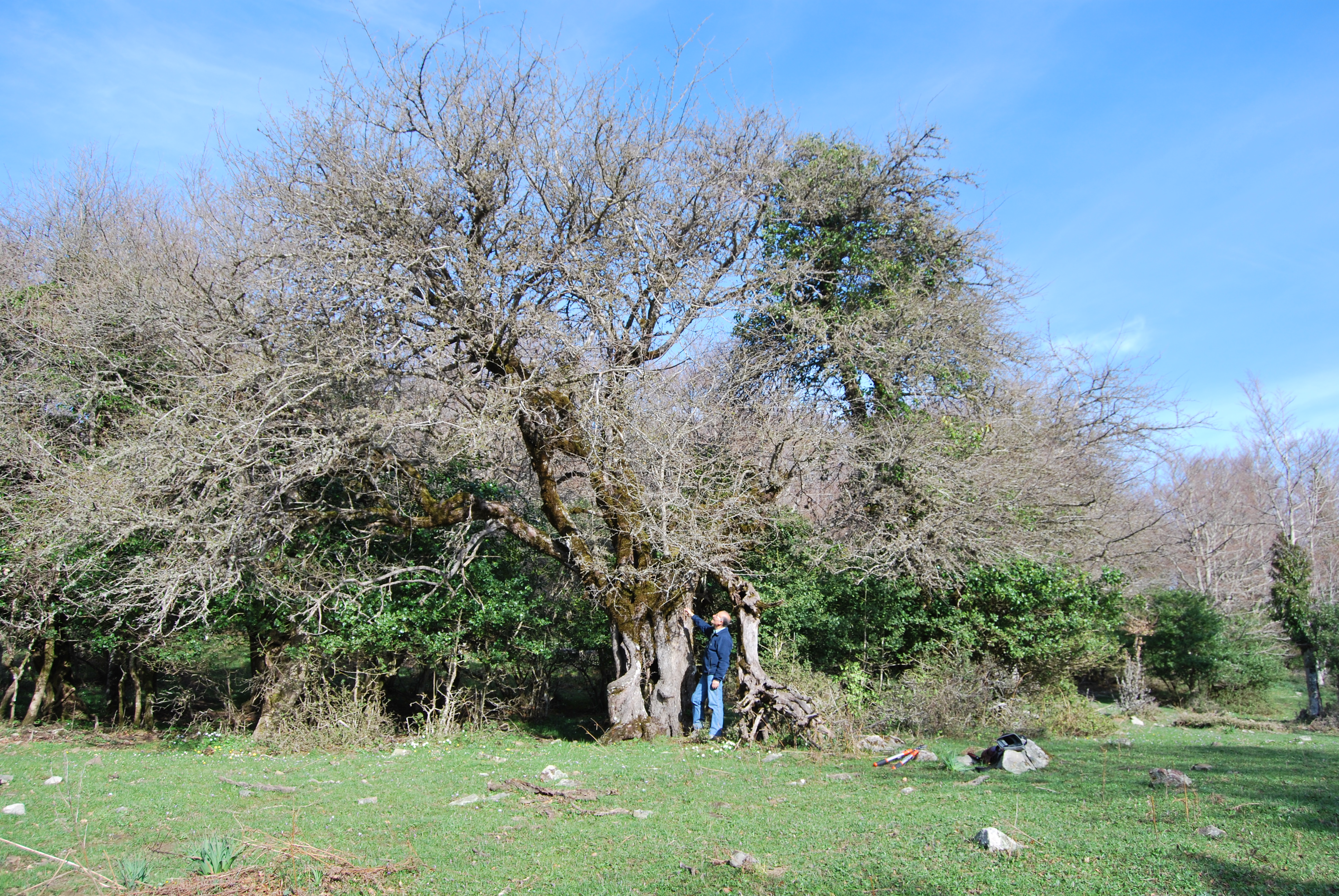 Vecchio esemplare di Melo selvatico, dal tronco completamente cavo. Nella stessa zona, nelle immediate vicinanze, si trovano altri 3 esemplari di meli secolari