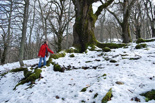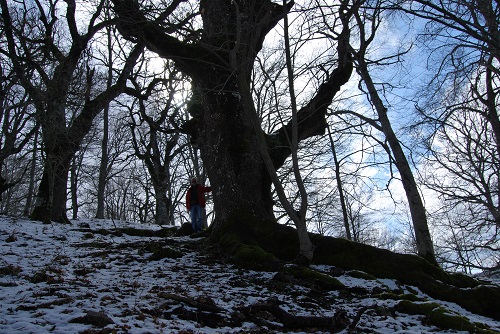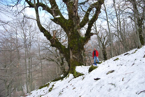 Un secondo bellissimo esemplare di Quercia della RNO di Malabotta, caratterizzata da tre grosse radici che si sviluppano per diversi metri verso valle, a 180°
