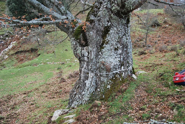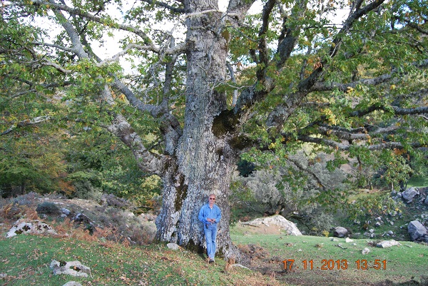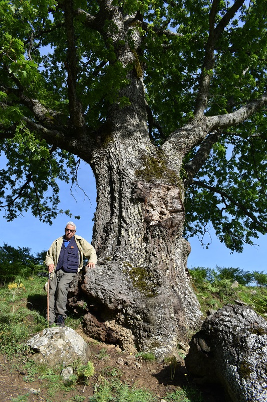 Un grosso cerro di questa zona, ricca di Lecci e Faggi secolari. Rivisto giorno 4 giugno 2023, Una branca a valle crollata, senza provocare danni rilevanti all'albero. Come allora, si nota la presenza di corpi furttiferi di funghi cariogeni, alla base (a monte) e sul fusto ad est.