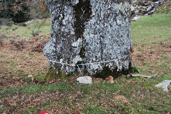 Misurazione in metri della circonferenza del fusto a 130 centimetri di altezza rispetto al terreno.