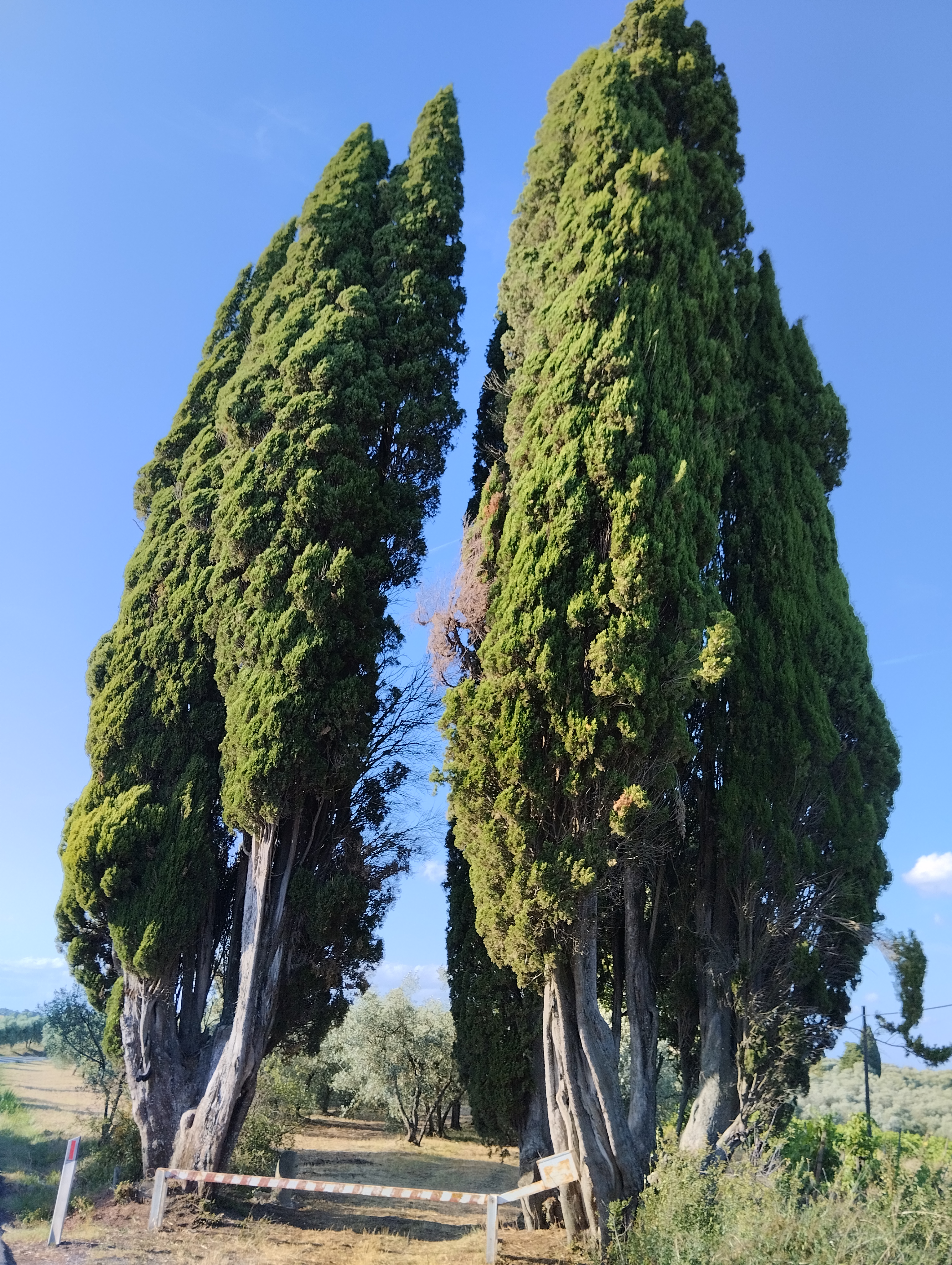 I Cipressi si trovano lungo la strada che Dal paese di Chiesanuova porta a San Casciano val Di Pesa , una sbarra indica la via di accesso di un terreno .