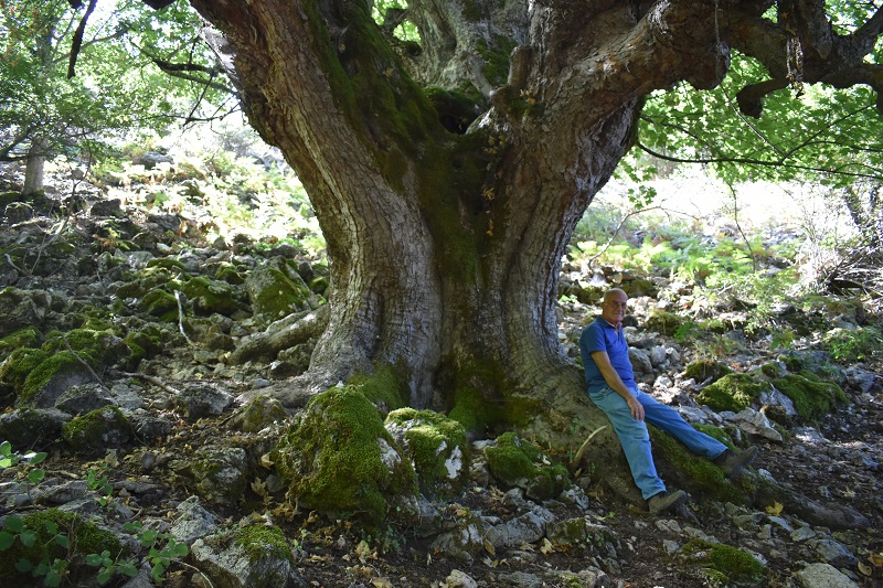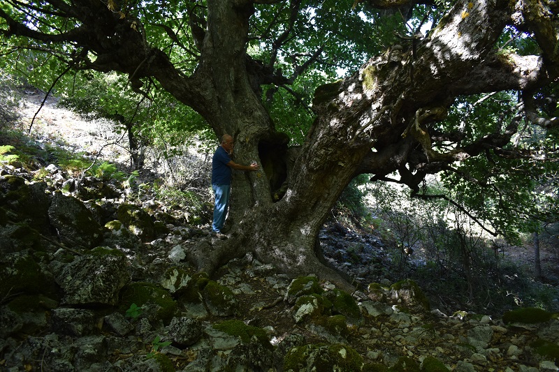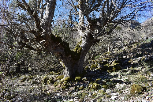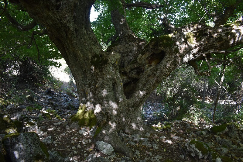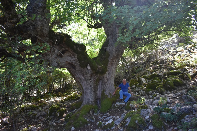 Bellissimo acero montano, dal tronco possente, con grosse e radiali radici, che si divide a qualche metro da terra in tre grosse branche, vuote come il tronco. Purtroppo è parassitato da Viscum album. In questa zona pericolo Edera e Vitalba