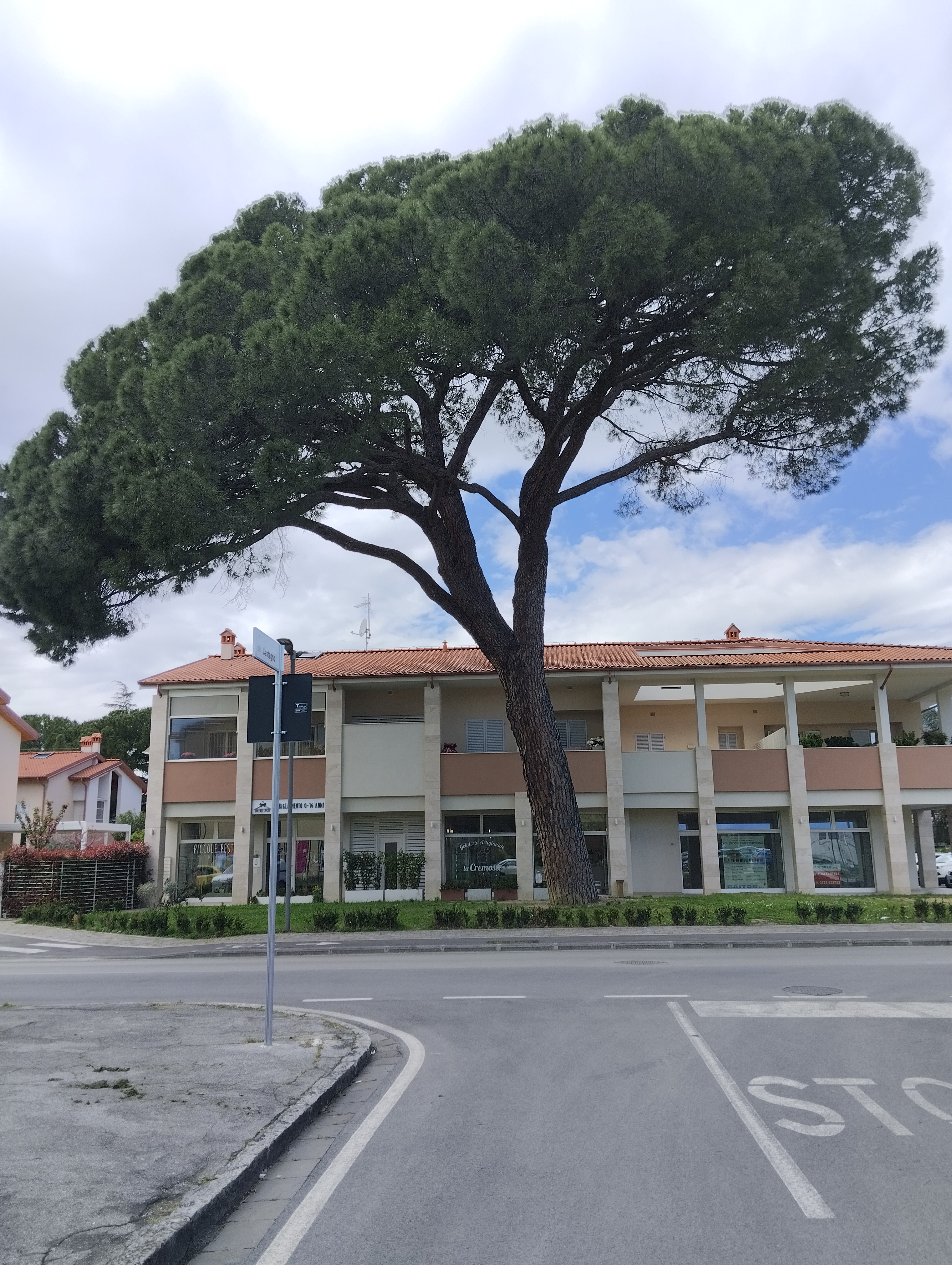 Ha una bellissima chioma , leggermente inclinato .un esemplare notevole e prezioso in questa zona urbanizzata.