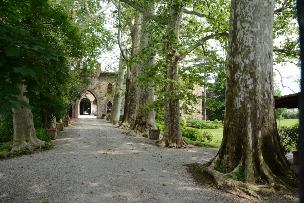 Doppio filare di platani davanti al castello medioevale di Altoè nel comune di Podenzano; notevole insieme omogeneo