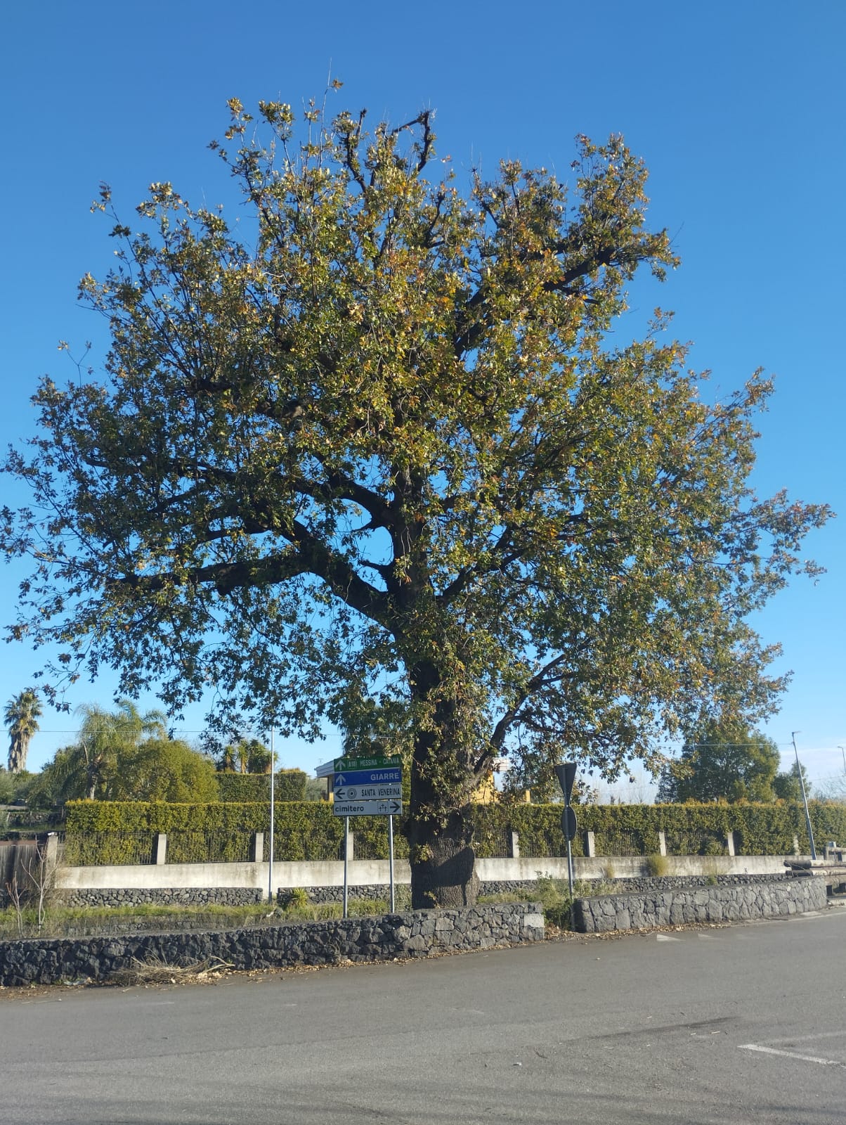L'albero ha perso una grossa porzione,anche a causa di un incendio:con questa porzione mancante, supererebbe ampiamente i 400 cm di circonferenza.