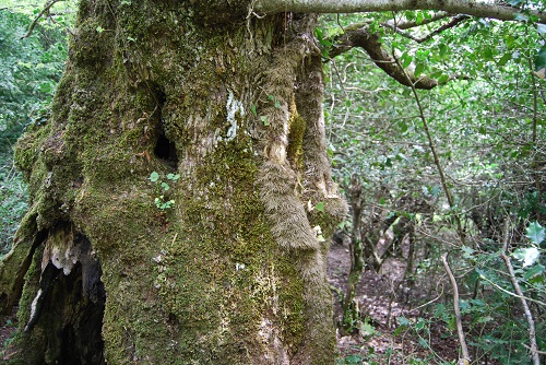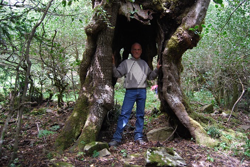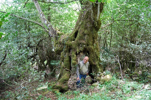 Vecchio Carpino nero dal tronco a forma di arco, con le porte rivolte a monte e a valle. Lo scorso anno è stata tagliata l'Edera sul tronco