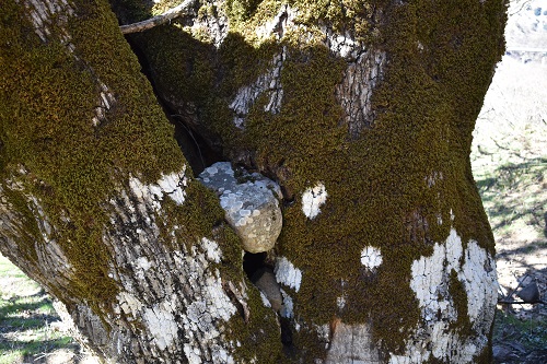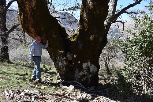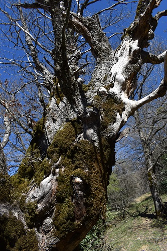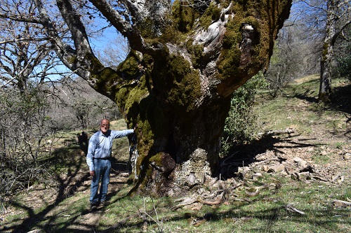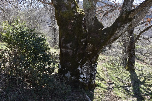 Una vecchia Rovere meridionale in scadenti condizioni vegetative (una delle due branche primarie è completamente secca), immersa in un bosco degradato come pochi, rovinato per sempre dai Daini reintrodotti sulle Madonie dopo quasi due secoli e dai maiali selvatici.