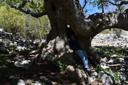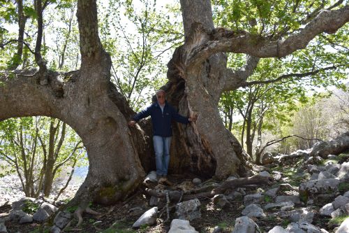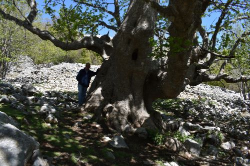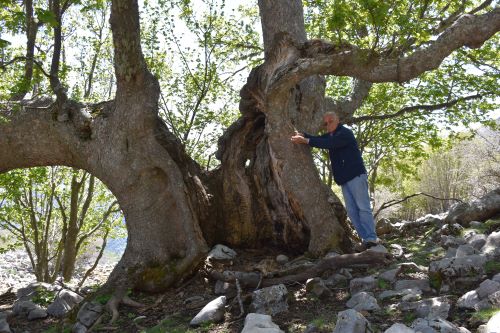 Incredibile, bellissimo Acero montano, mancante della cima, con tre grosse branche primarie, cavo a monte. La misura del fusto, minima, considerando pure che manca qualcosa a monte, fanno di questo Acero uno dei più grossi in assoluto