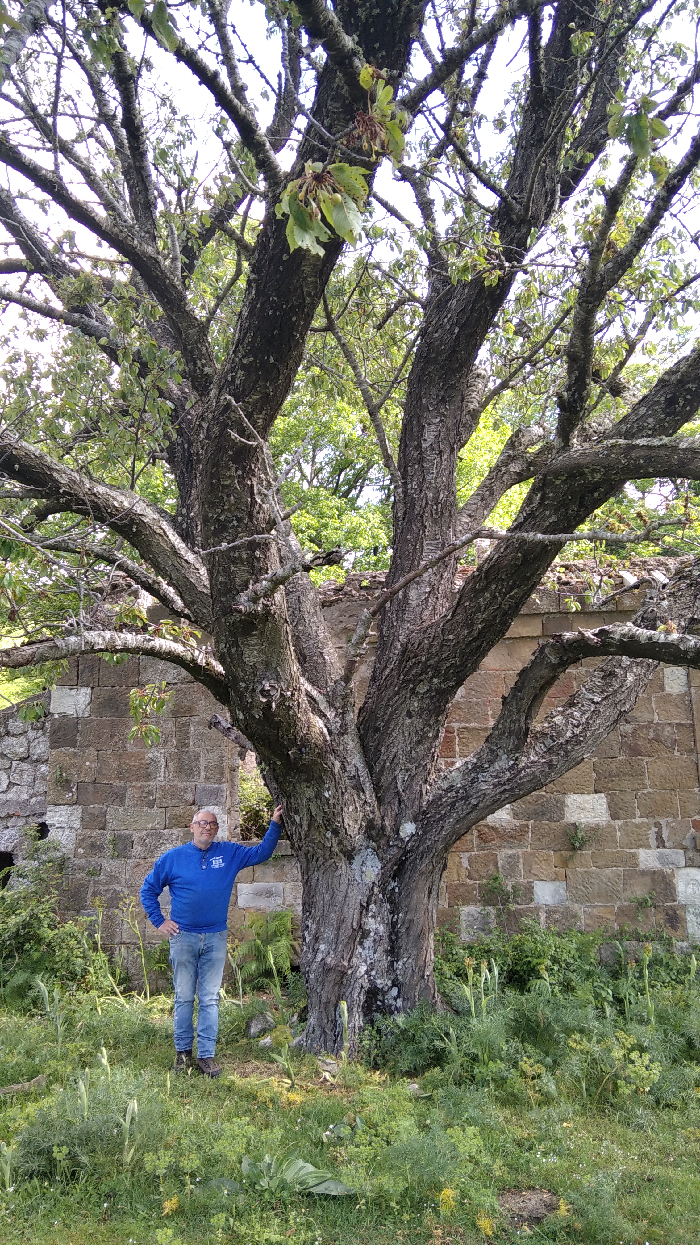 Vetusto esemplare di ciliegio che ancora fruttifica. Fusto monocormico. È in posizione totalmente isolata e distante una decina di km dal paesetto di Fiumedinisi. La costruzione accanto è un rudere, precedentemente gestito come rifugio fino agli anni '70 dal Club Alpino Italiano. La zona è utilizzata come pascolo. Il terreno è demaniale ed è raggiungibile solo con un fuoristrada.