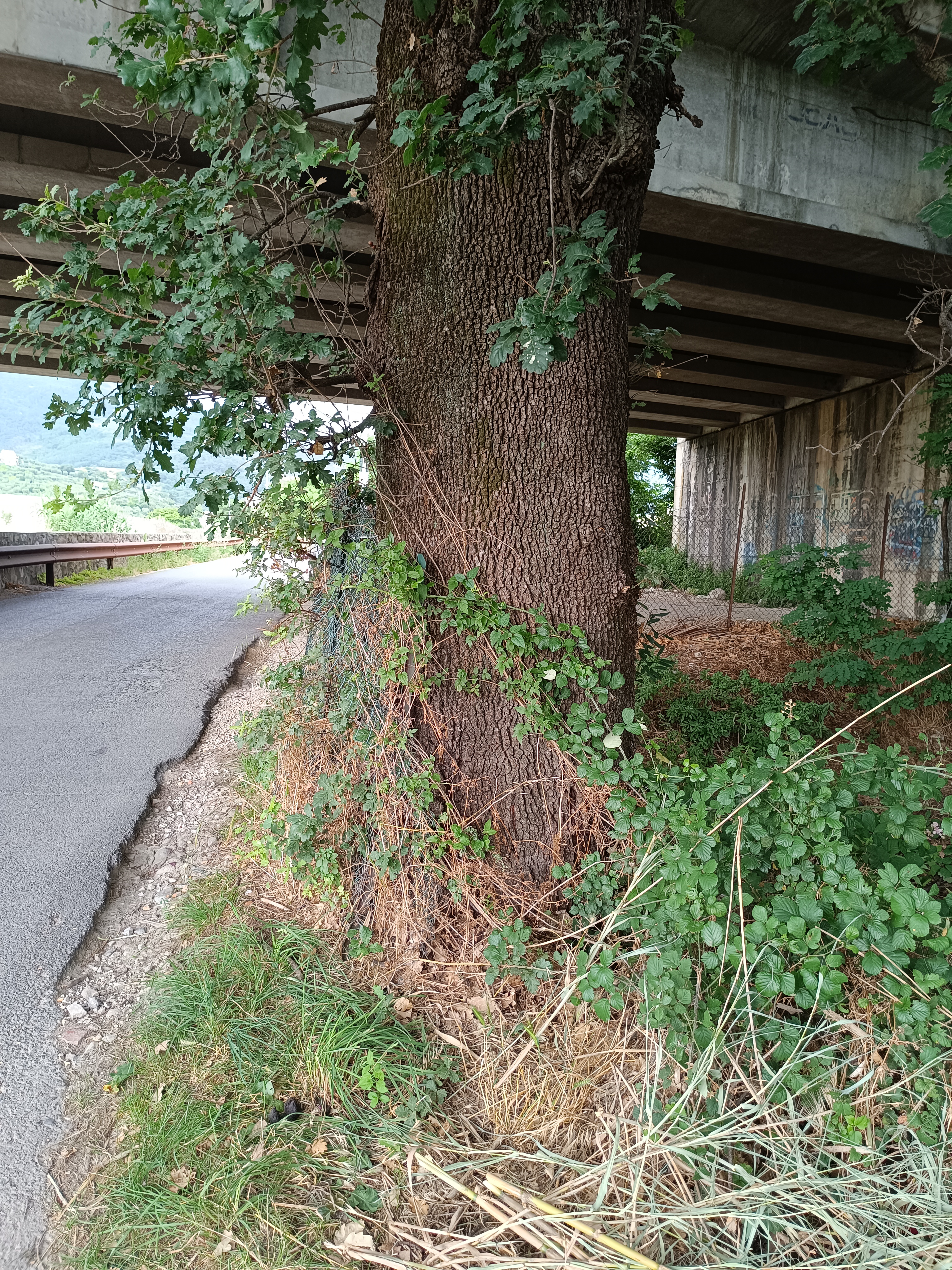 Quercia sp. addossata ad un cavalcavia in via Papini a Montale , è in buono stato nonostante la vicinanza della strada ed è poco valorizzata dai numerosi rifiuti intorno!