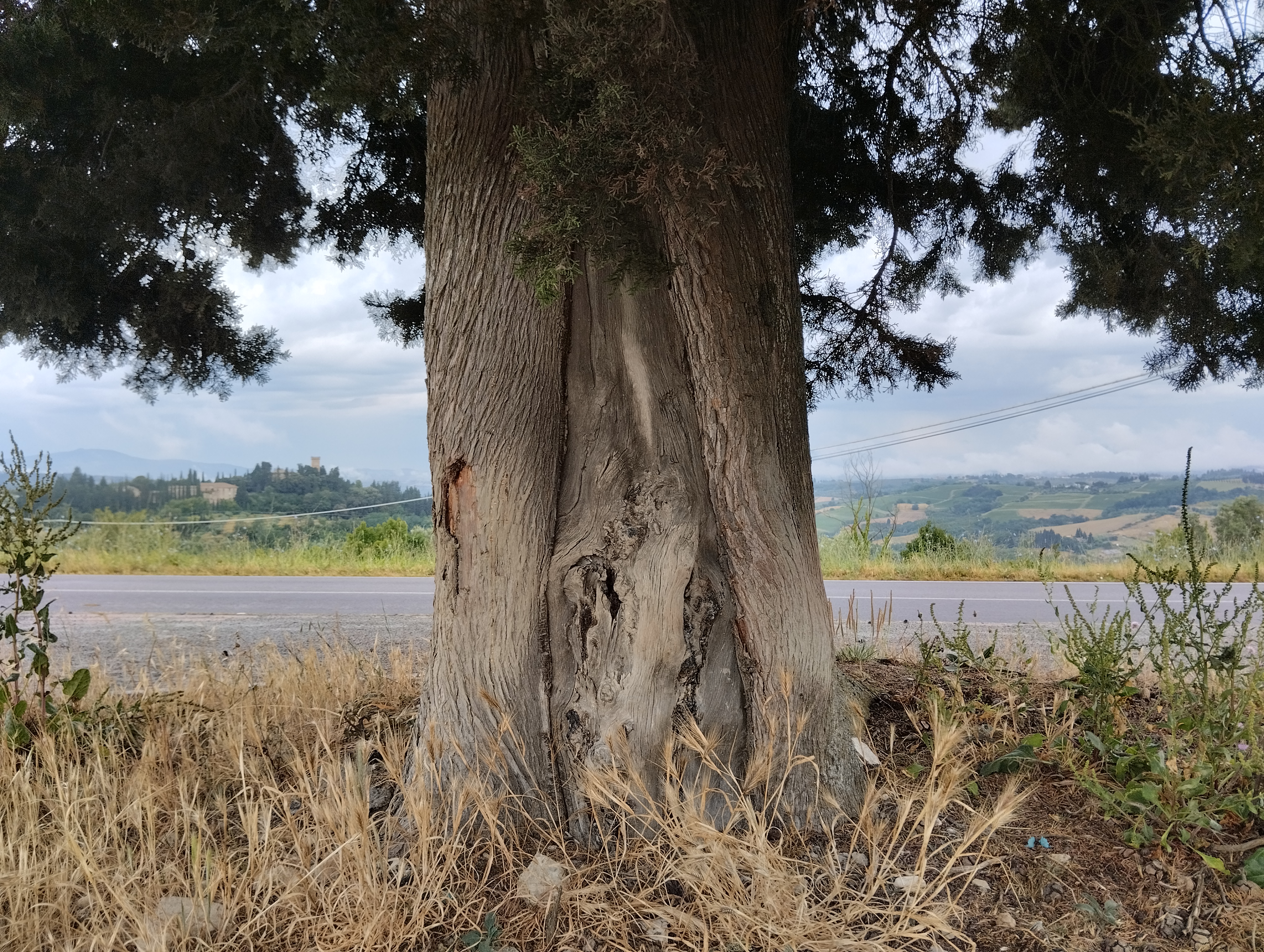 LA CIPRESSA DI VIA LUCARDESE Un'immagine che risale agli anni 40/50 circa mostra l'albero già ben sviluppato, in prossimità della Cappella di S. Antonino ai Lecci (ora sepolta, e un tempo parte delle proprietà del Castello di Sonnino). In quella zona il 12 giugno del '44 ci fu un mitragliamento che vide la morte di Franco Giani ed il ferimento di altre persone, come riportato a pag. 59 della pubblicazione di Andrea Pestelli "Montespertoli 44”. E sempre durante la guerra, si narra che la cima dell'albero sia stata colpita sotto un bombardamento. Anche a questo può essere dovuta la particolare forma che lo caratterizza. Per le informazioni si ringrazia Graziano Latini e Mauro Mangani