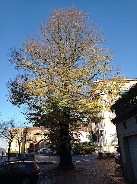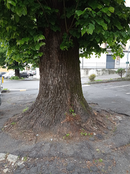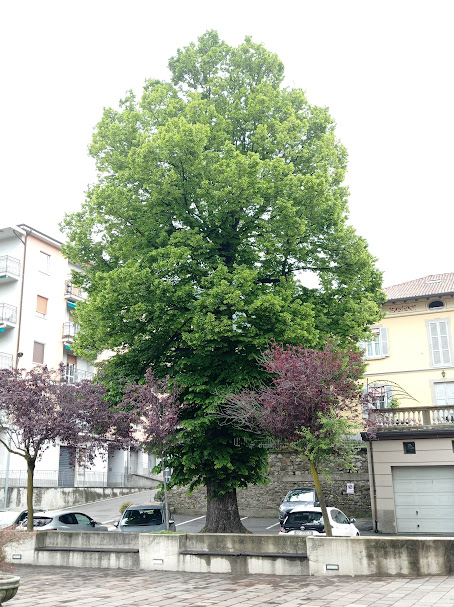 Grande esemplare di Tiglio cresce nel parcheggio a ridosso della chiesa parrocchiale dell'Addolora un tempo Santuario.