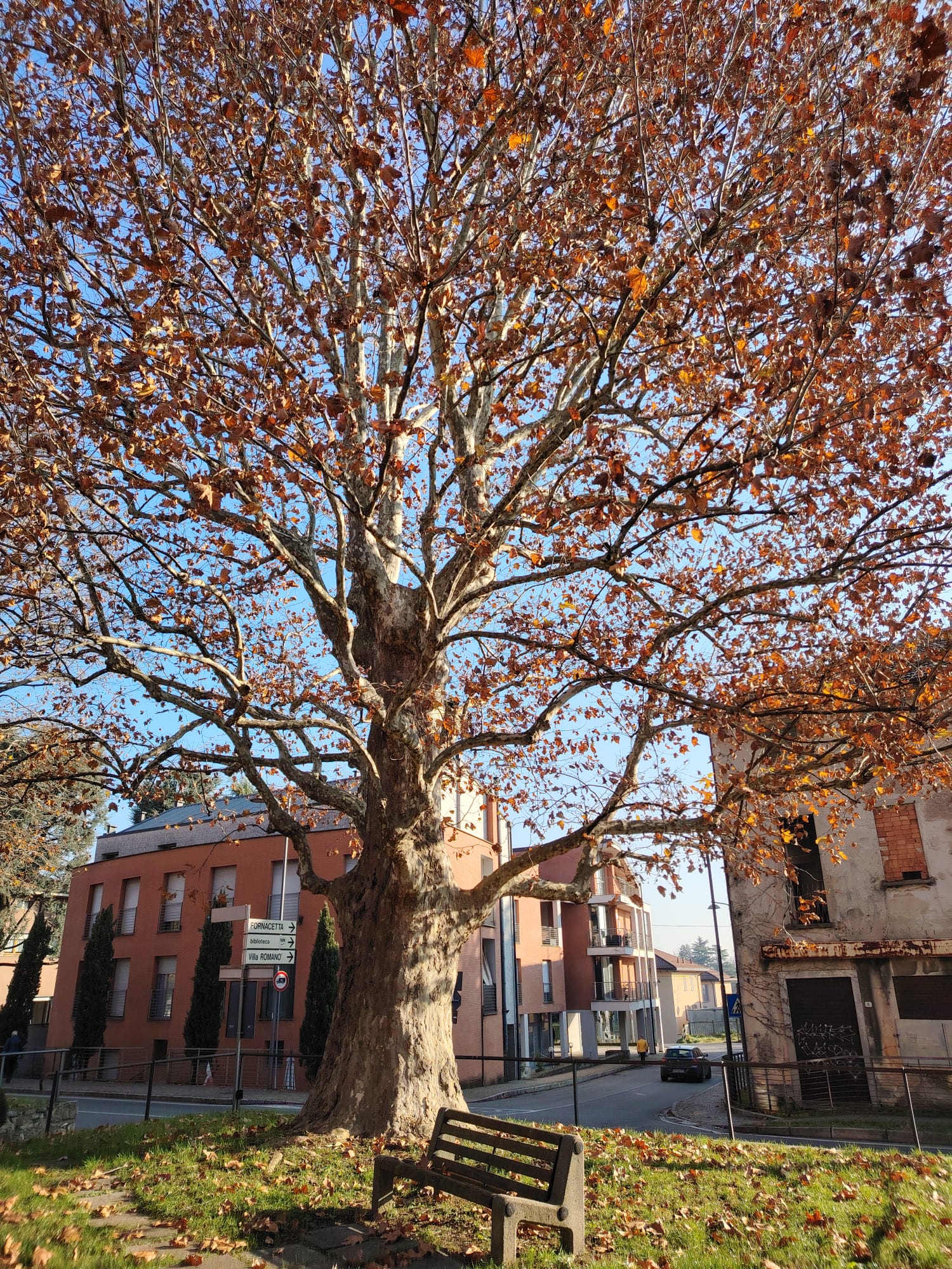 Davanti al Municipio di Inverigo, presenti 3 platani di grosse dimensioni, con chioma potata. Il centrale presenta una vistosa iperplasia al fusto.