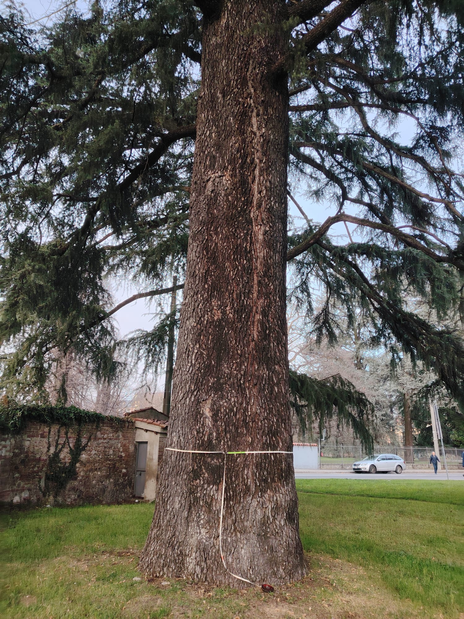 Il Cedro nell'aiuola del parcheggio, presenta una profonda depressione del legno, lato sud, da terra fino a circa 8 metri. Sintomo ascrivibile a problemi interni e quindi ridotta crescita in circonferenza riscontrate nel 2024. Le prime misure sono di 495 cm nel 2016 e 503 nel 2021 (fonte Saro Sciuto).
