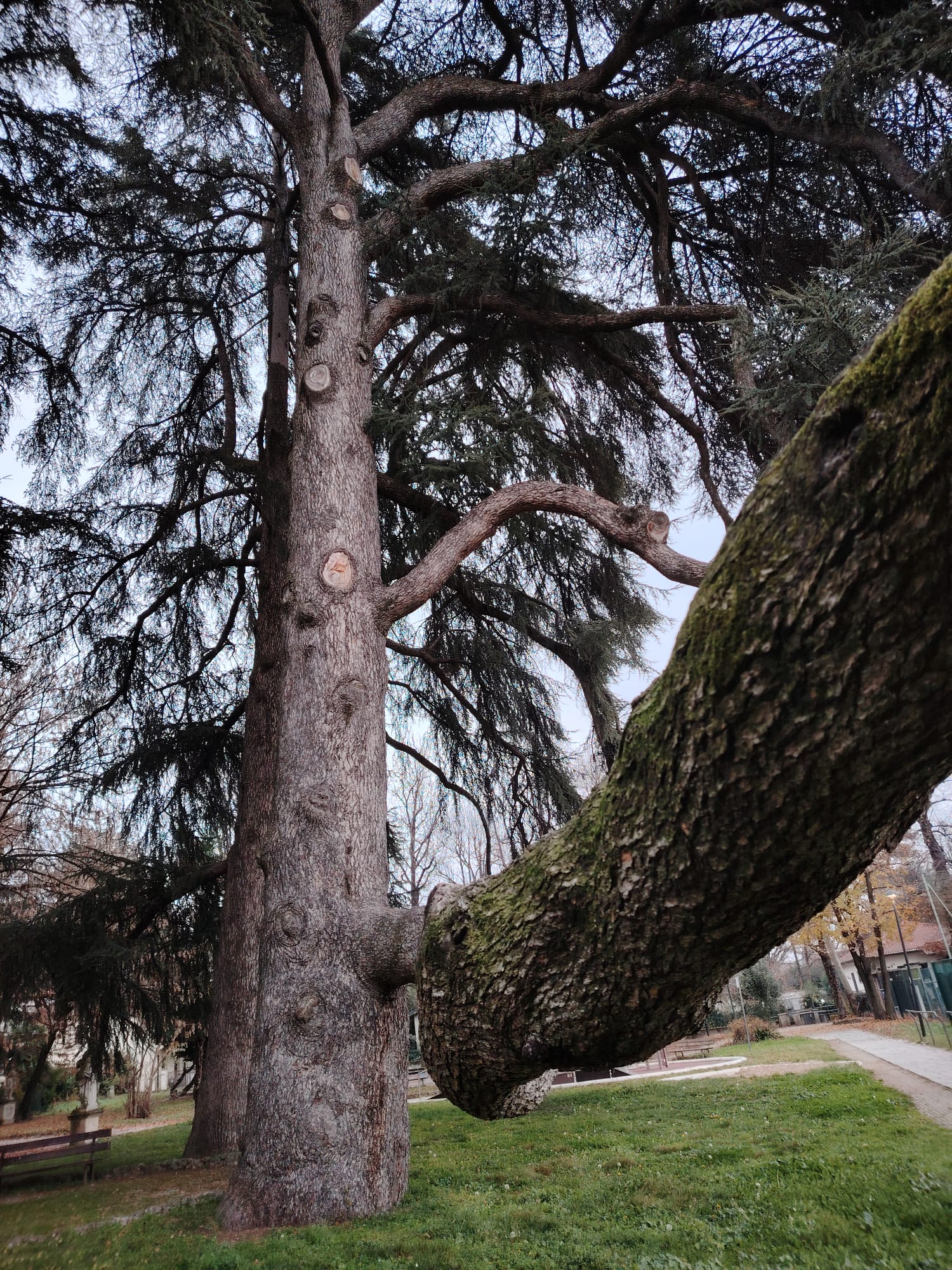 Fa parte di un "trittico" di Cedri dell' Atlante, disposti ai vertici di un triangolo, con una grande branca basale puntellata da un sostegno. Alberi alti almeno 40 metri. Nel parco storico Scalabrini, ora sede del municipio.