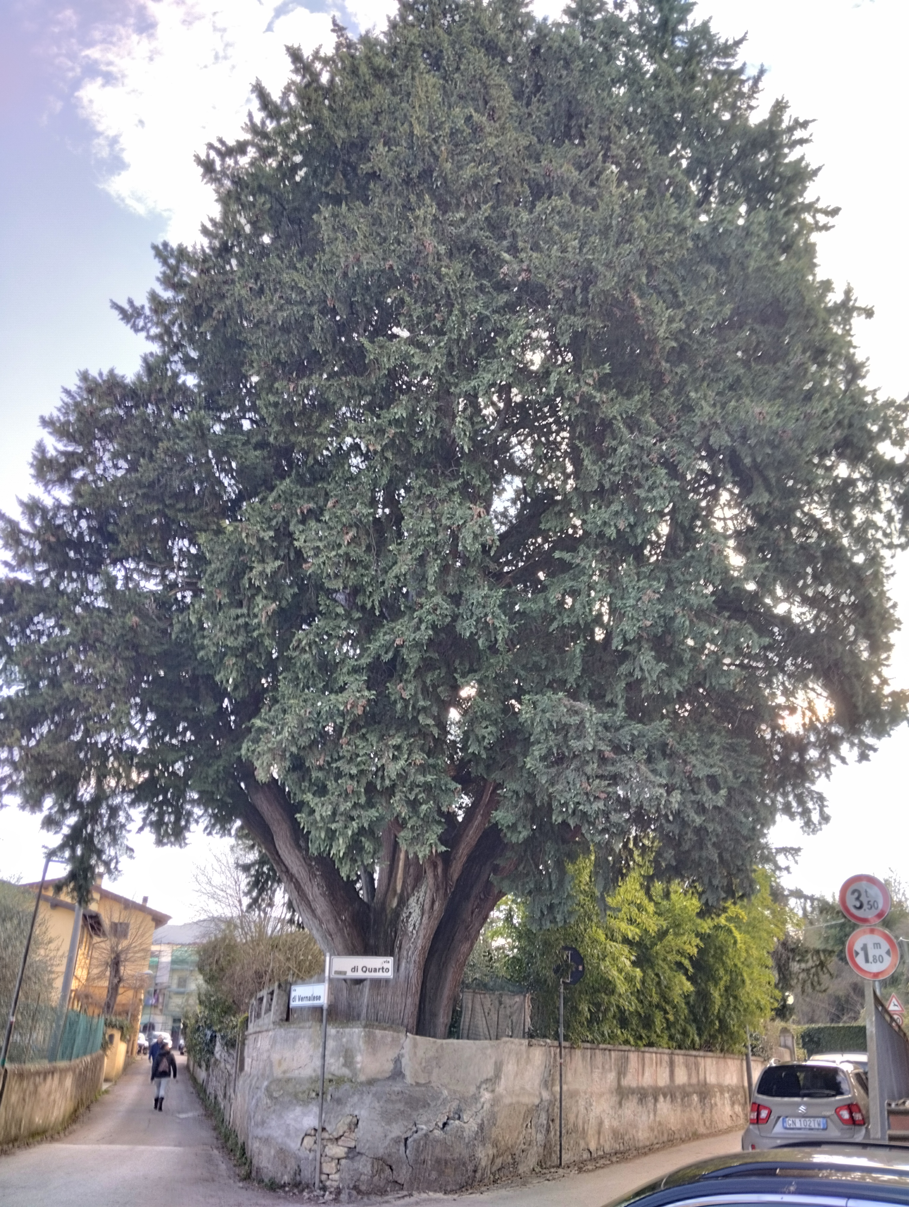 II Cipresso si distingue per le notevoli dimensioni, presentando una circonferenza ben superiore al limite soglia dei 400 cm. E' una pianta longeva, di età superiore ai 200 anni. Inoltre presenta un bel portamento con branche ascendenti a candelabro e un fusto con marcati contrafforti, probabilmente generato dalla fusione di più cauli, avvenuta al di sotto dell'altezza di 1,30 m dal terreno. Caratterizza la storia della località tanto da averne determinato il toponimo: "la Cipressa". E' ancora visibile sul lato a sud della pianta la struttura di una pista da ballo del Circolo Ricreativo che ne occupava il resede fino agli anni '60 del secolo scorso, molto frequentata dagli abitanti del centro abitato di Rimaggio e dei dintorni, che gli ha fruttato il soprannome di "Cipressa sonora". Patrimonio identitario del territorio ripolese, rappresenta valore testimoniale
