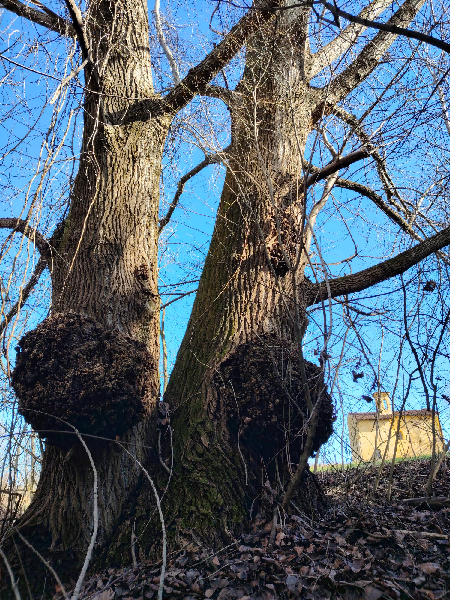 Insieme omogeneo di 2 tronchi addossato, di cui il maggiore misura 395 cm a 130 da terra lato monte. Entrambe presentano curiose masse tumorali vistose lato valle. Nel bosco vicino alla iconica "Chiesina dei morti"della frazione Capriano di Briosco dedicata ai morti della peste del 1600. Segnalazione Valentina Boffi.