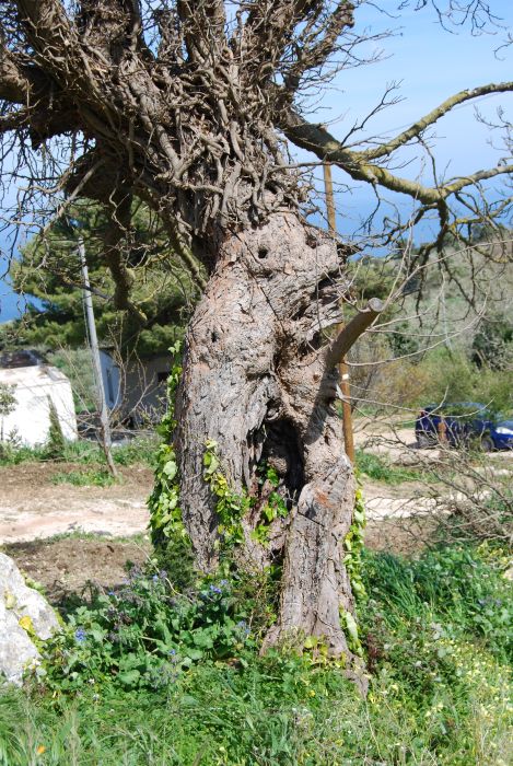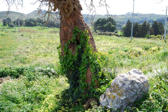 Si tratta di un Gelso nero forse secolare, in proprietà privaya ma visibile, avvolto da Edera, localizzato a sinistra della Strada Provinciale 31 per Monte Erice. Non misurato