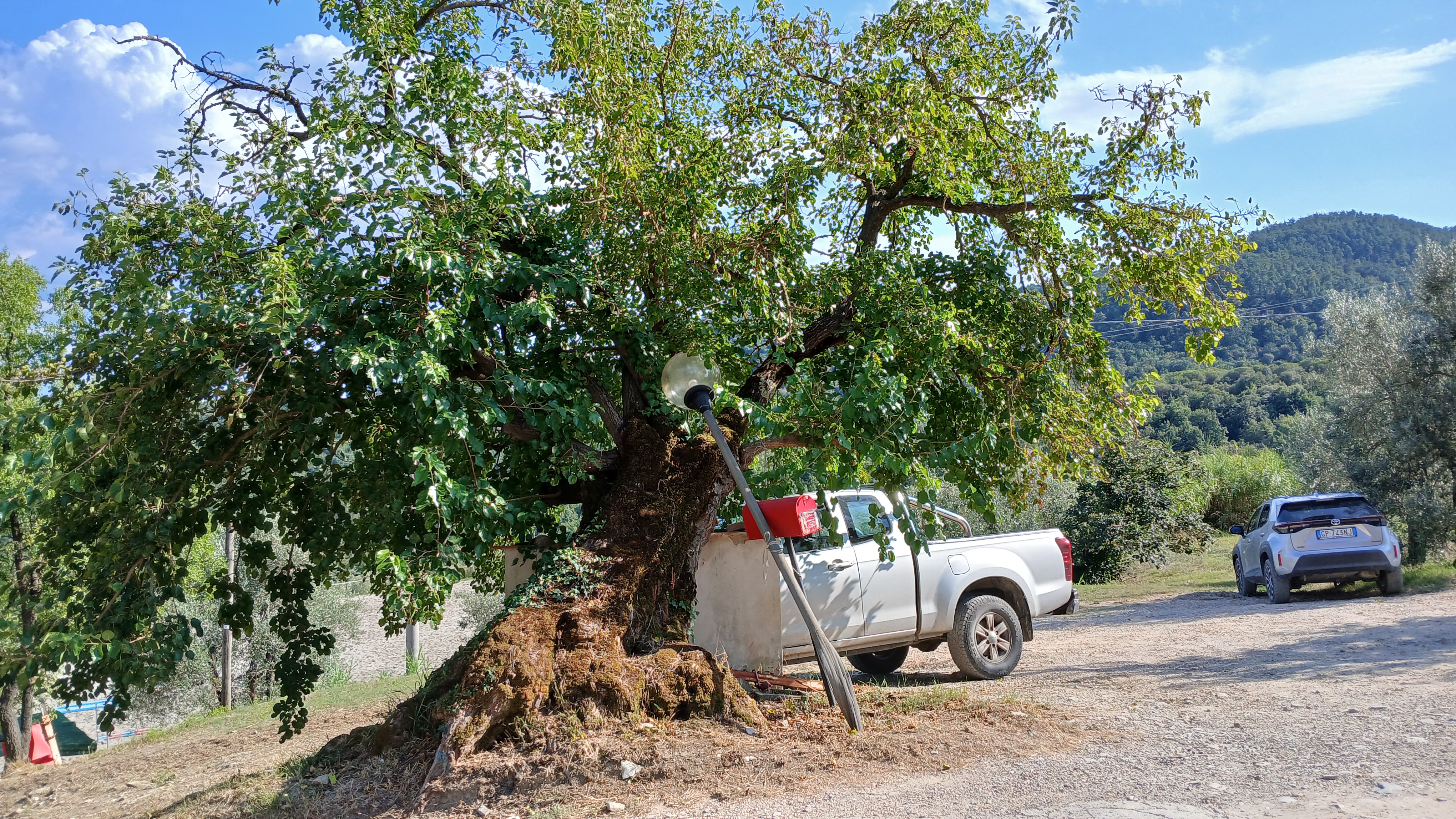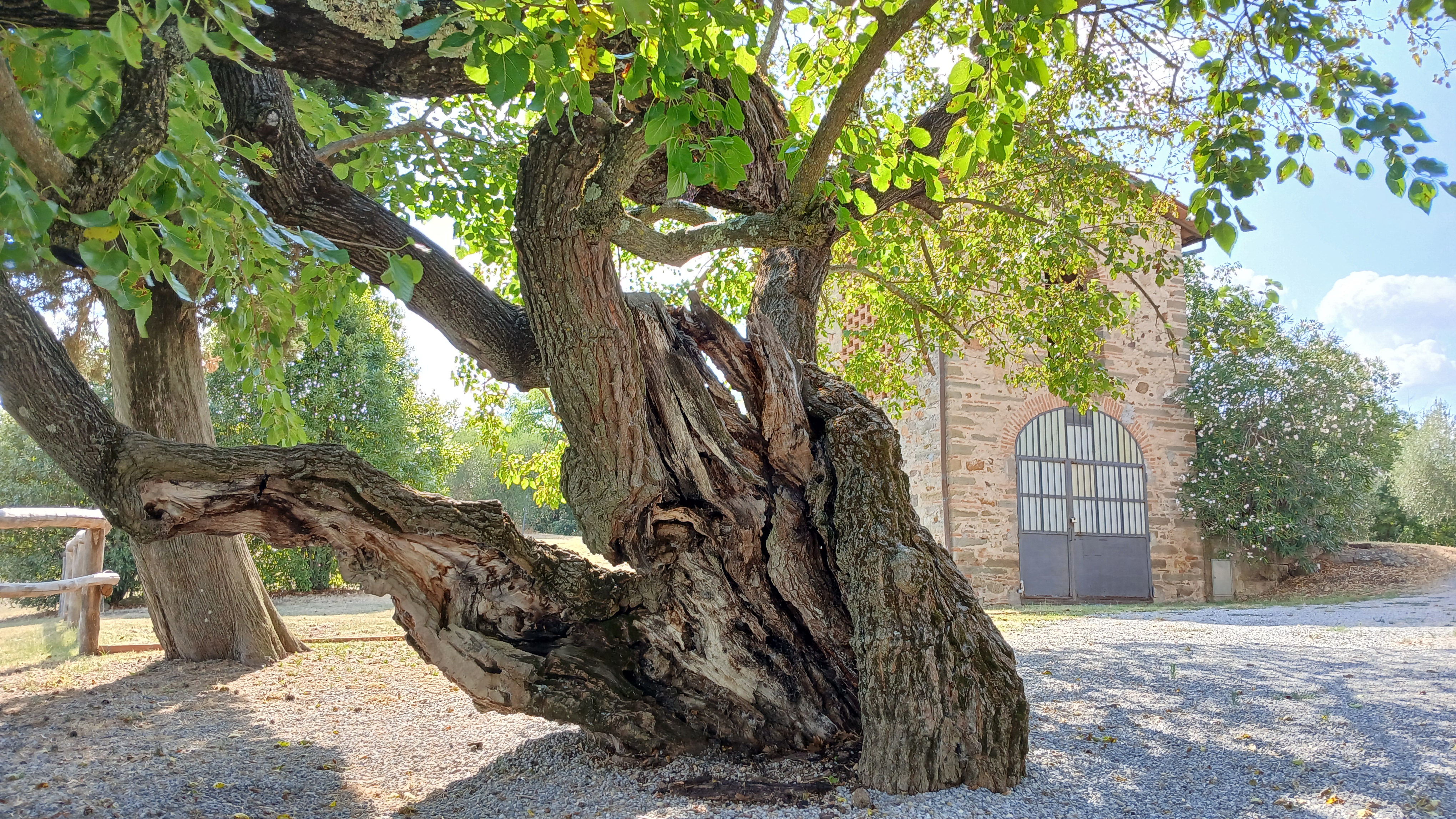 Notevoli esemplari di Gelso bianco vegetano nel giardino di una casa colonica immersa in un panorama sulle colline di Carmignano e a ovest di Artimino, ,fino a poco tempo prima questo luogo era un rinomato ristorante . I gelsi come gruppo omogeneo von misure dai oltre 3.67 a sotto i 3 mt di circonferenza .