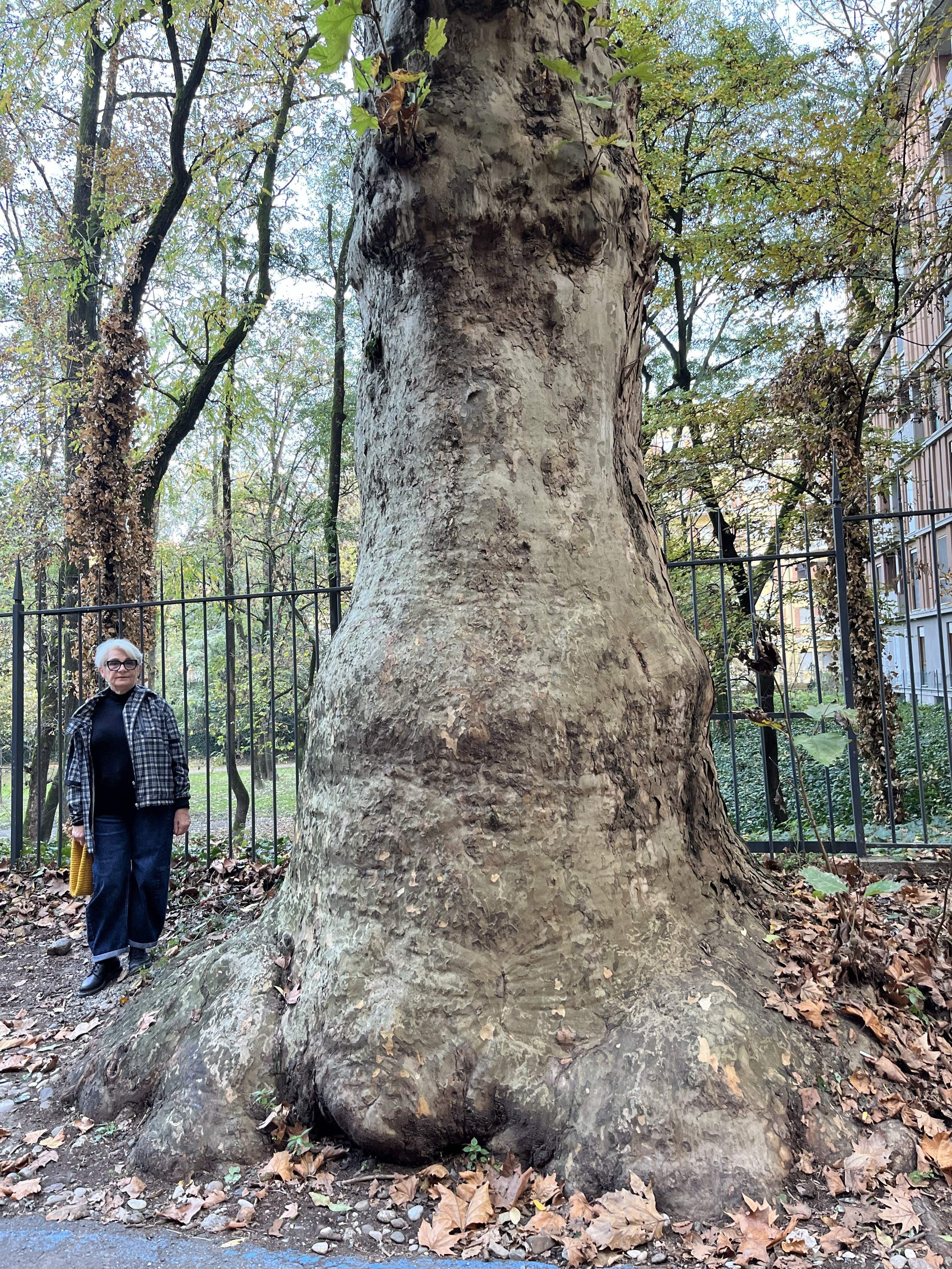 l'ultimo tratto di via Santa Franca a Piacenza, prima del Pubblico Passeggio, viene chiamato "Sette Platani". In effetti due esemplari hanno caratteristiche monumentali per età e dimensione. Questo esemplare ha una base particolarmente allargata.