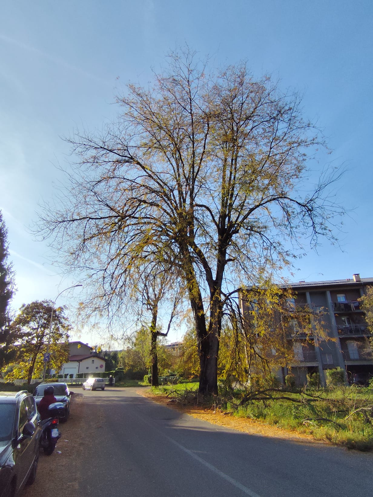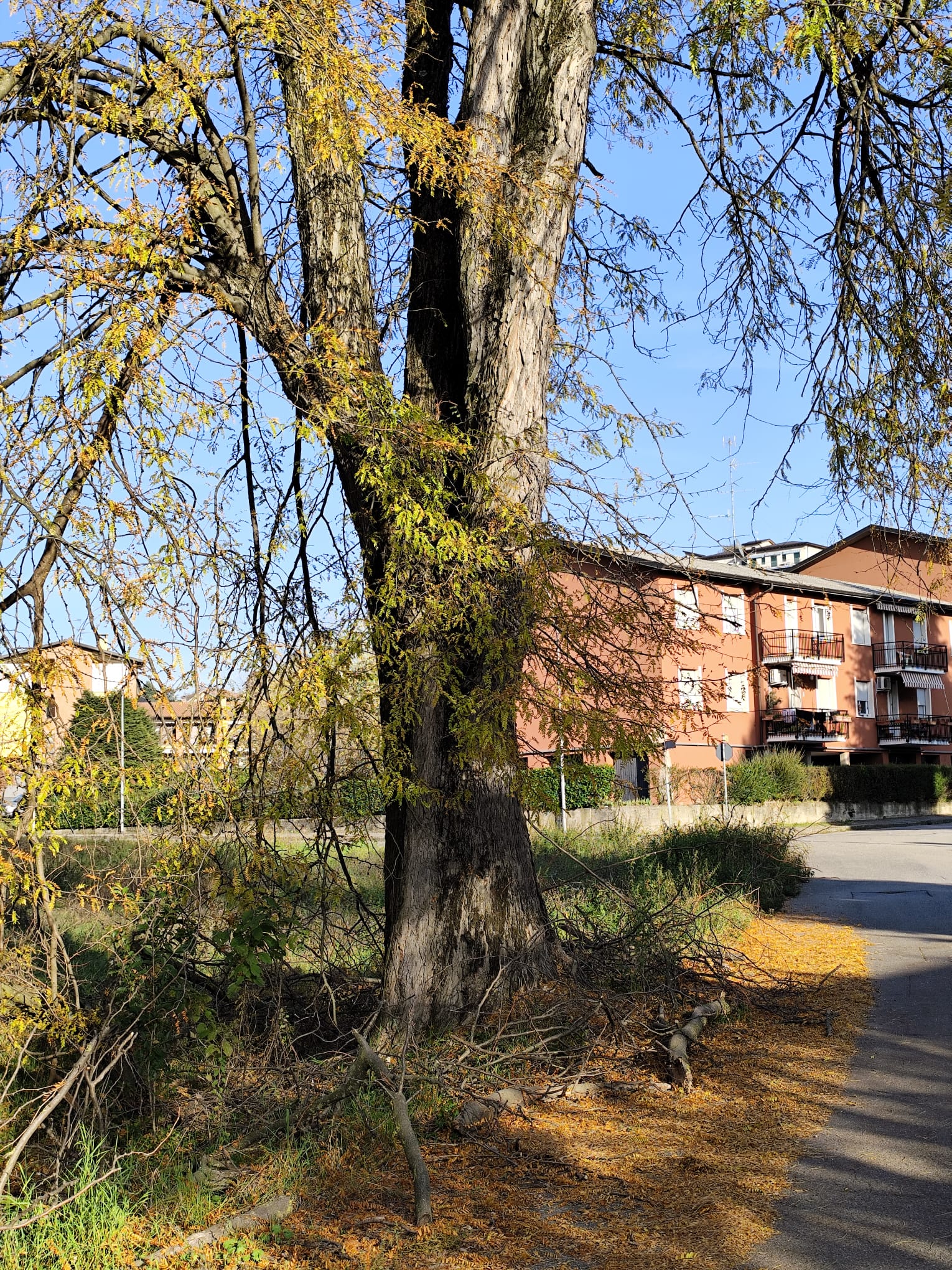 Grande esemplare di acacia spinosa o Spino di Giuda radicato a bordo strada lungo via M.L. King, ha un'età stimabile in circa 70 anni da confronti con fotografie aeree storiche.