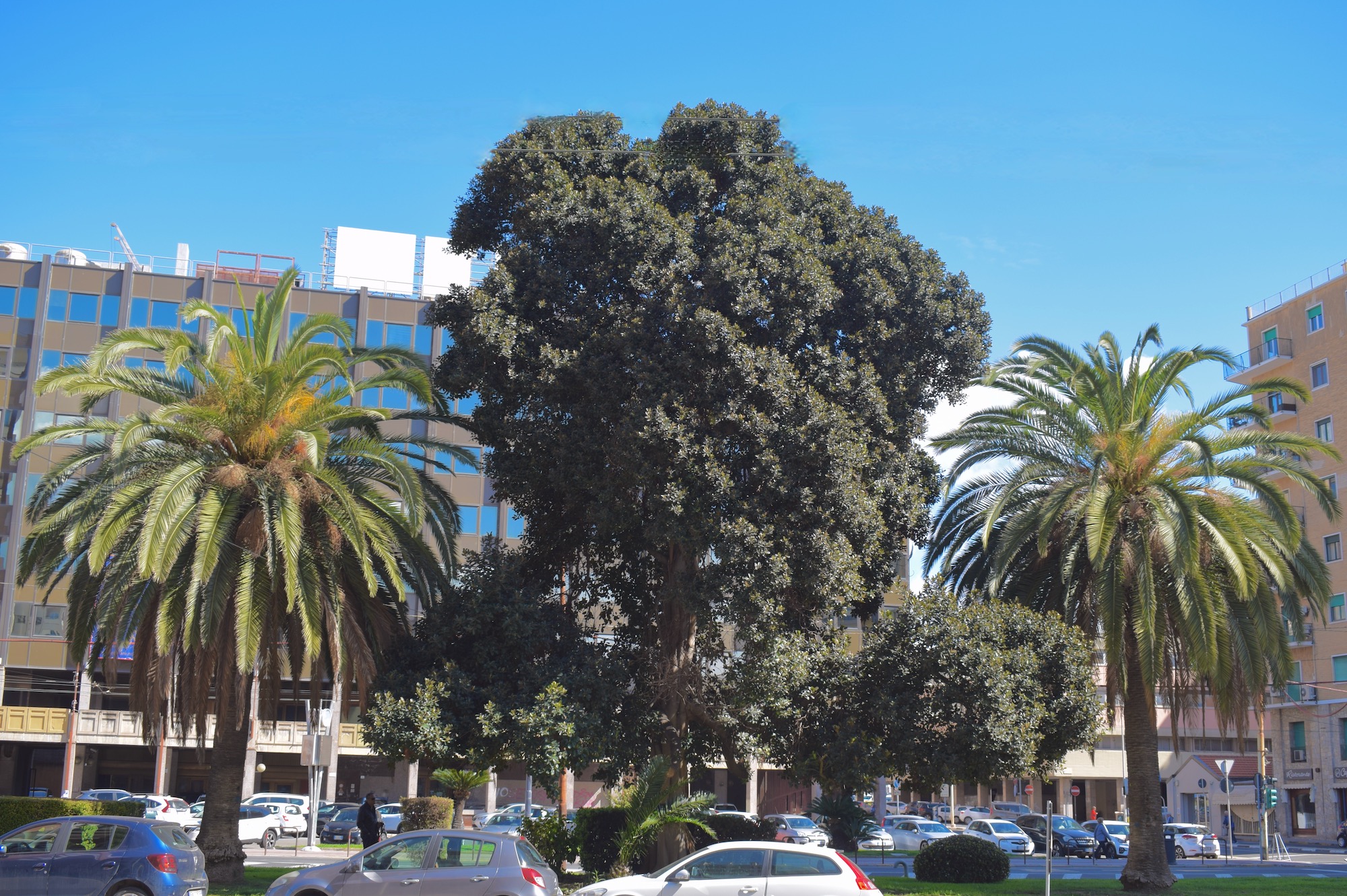 Più che di una piazza si tratta di un grande spartitraffico tra due importanti strade di Cagliari, dedicato al fondatore del Partito Sardo d’Azione. Il ficus è affiancato da due belle palme (Phoenix canariensis) e circondato da numerose Cycas.