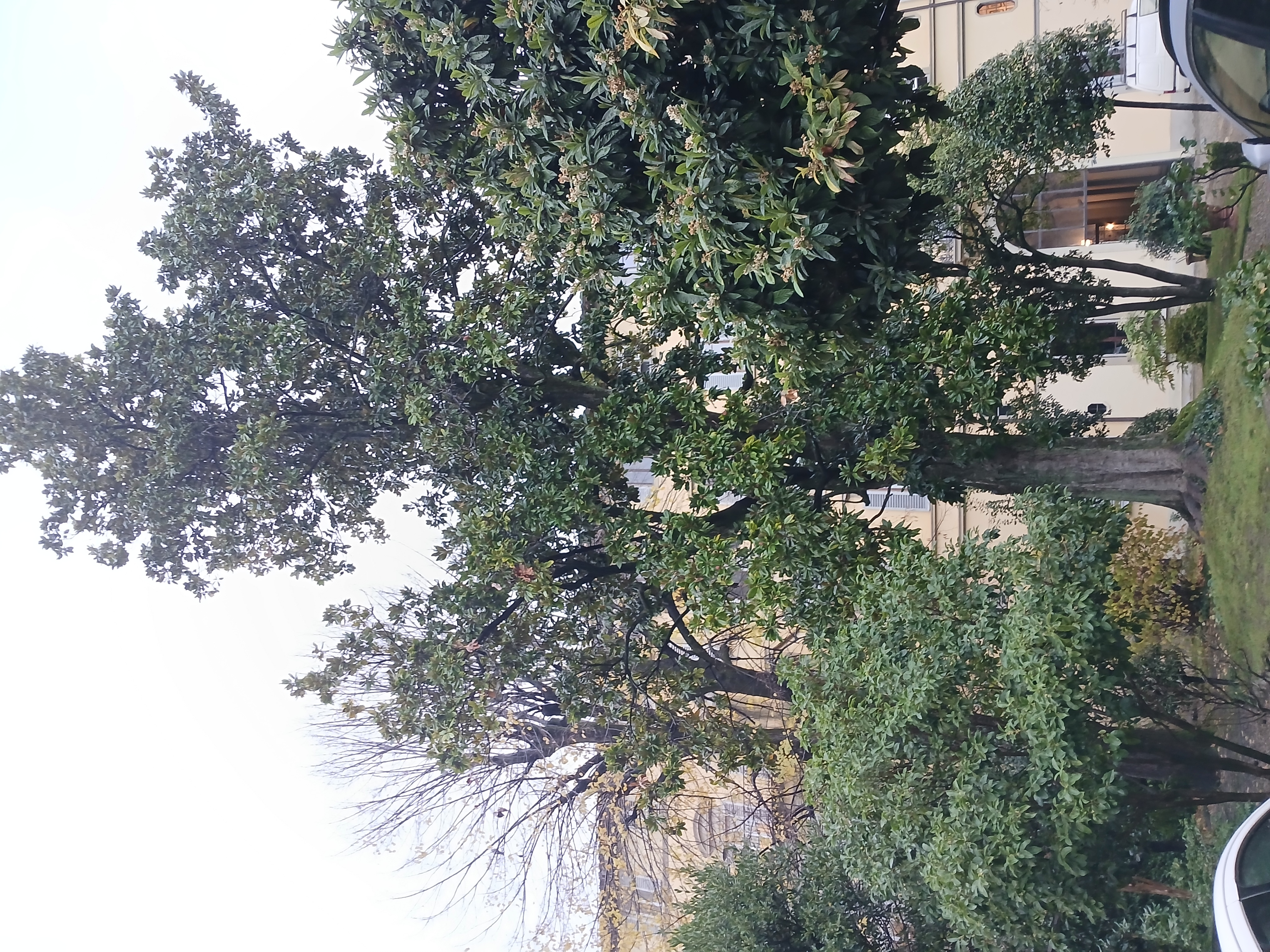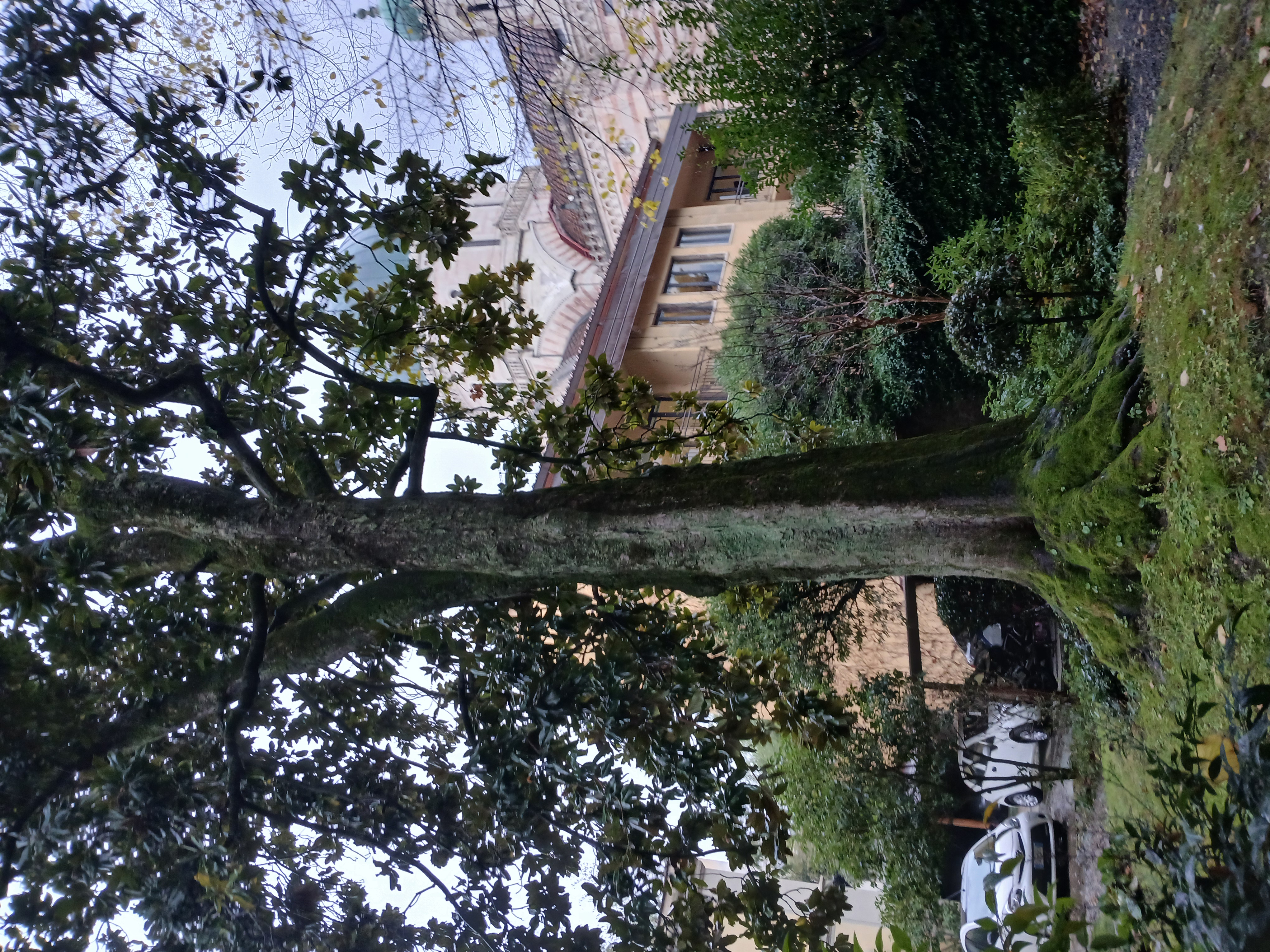 Una interessante magnolia vegeta all' interno di un palazzo accanto alla Sinagoga .