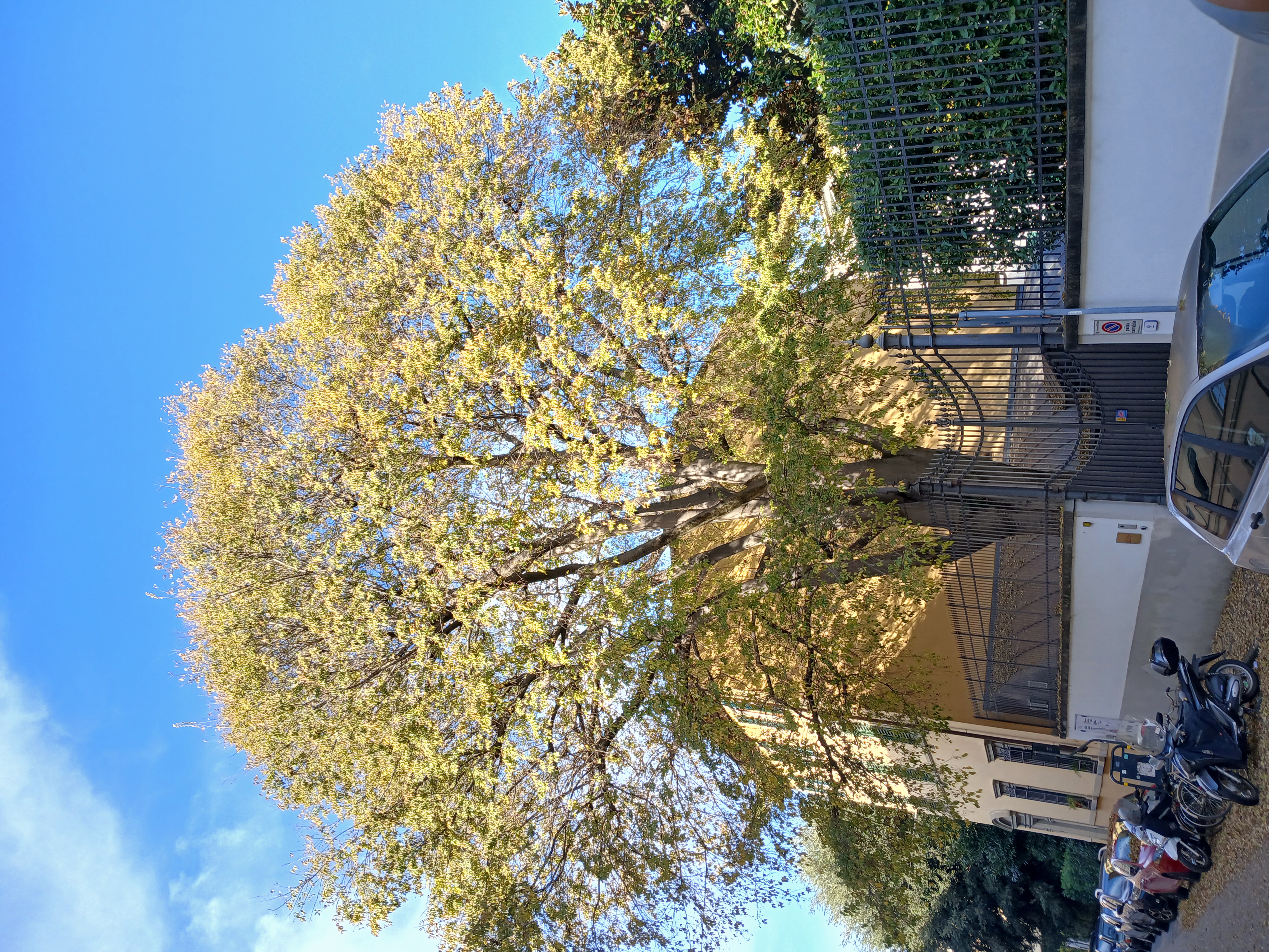 Il grande bagolaro vegeta nel giardino di un palazzo storico a Firenze sede della Generali banca Privaty
