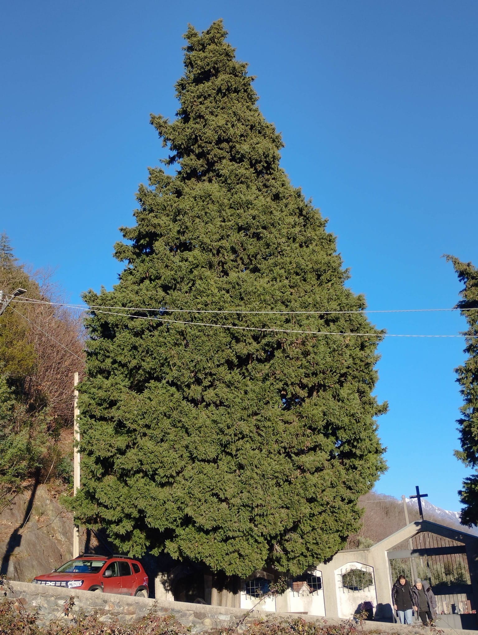 Esemplare probabilmente secolare,in quanto i primi seppellimenti risalgono al 1908.