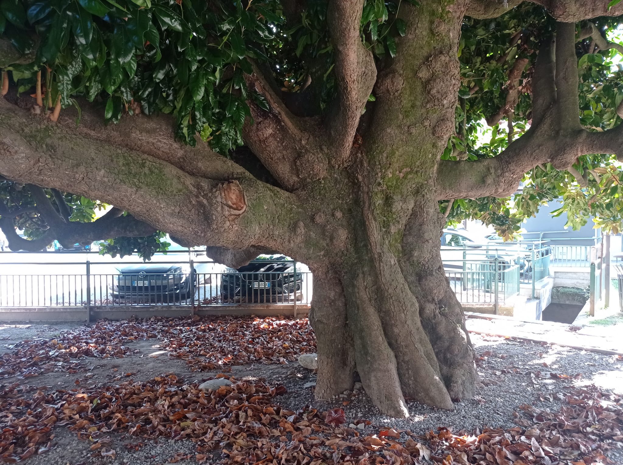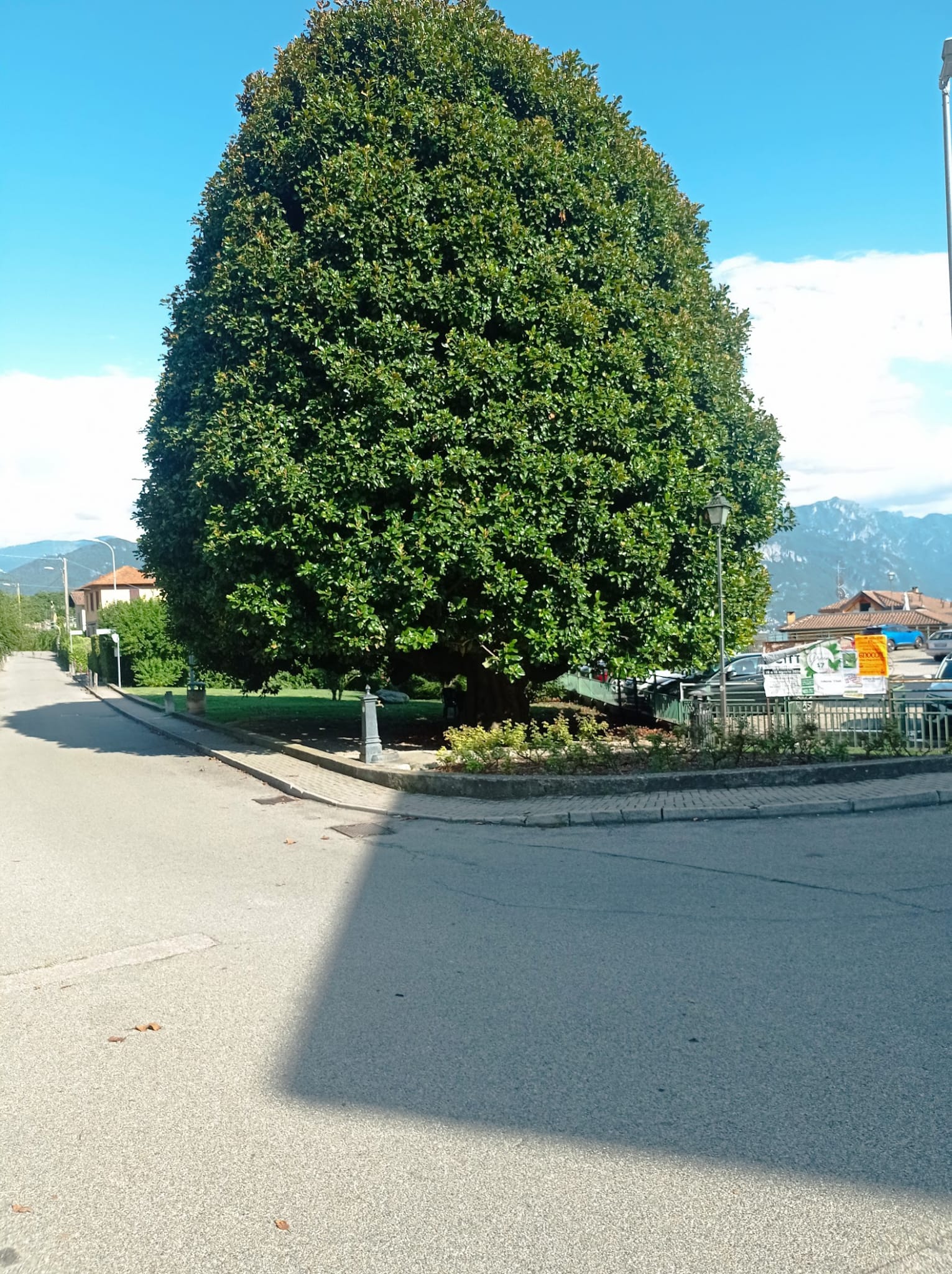 Superba Magnolia bicentenaria, molto amata dalla gente del posto e quindi molto ben curata, con una curiosa chioma a forma di uovo Posta all'ingresso di un parcheggio di un ristorante a cui dà il nome