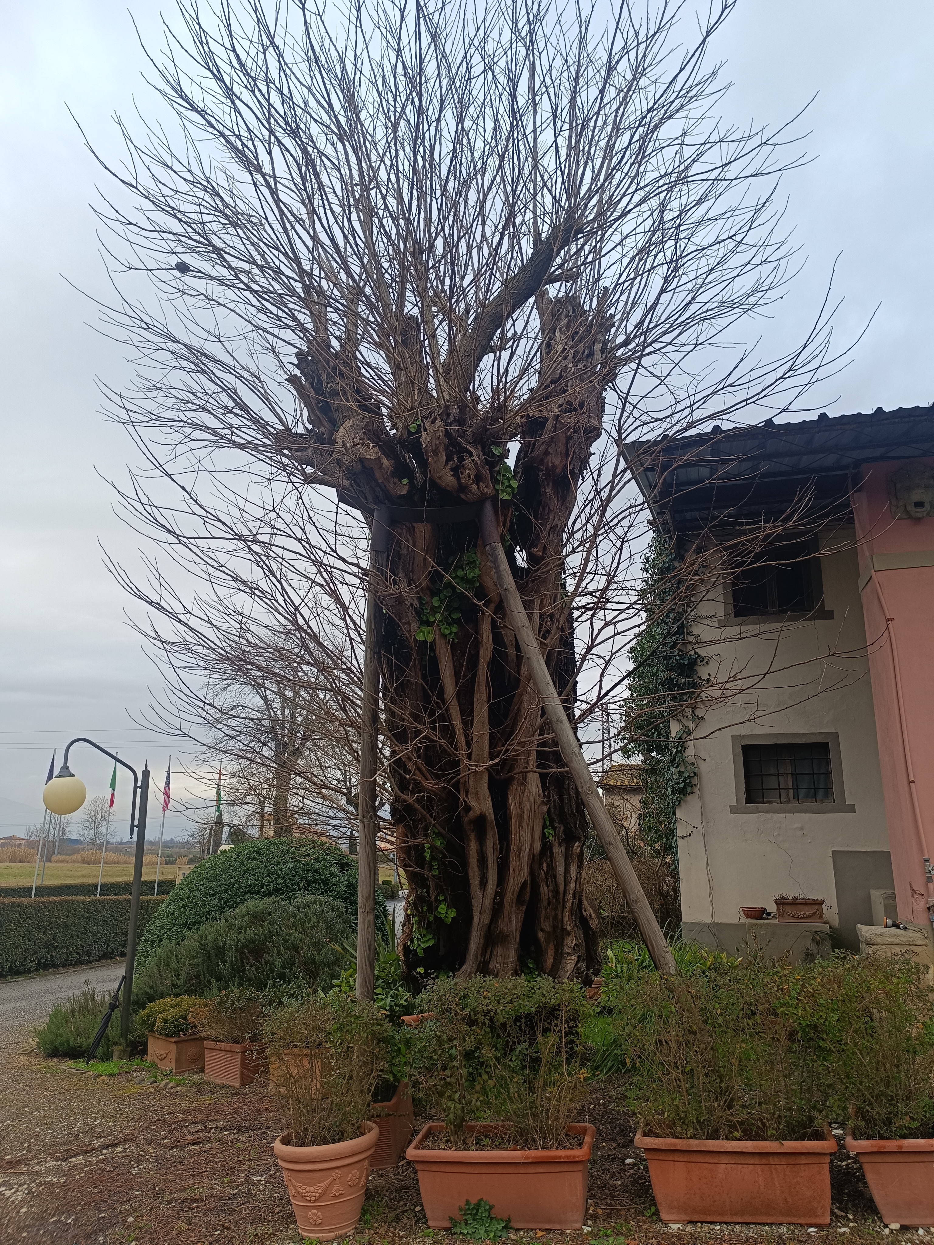 Situata in un piccolo borgo diventato reception della Villa Castelletti, vive e vegeta inclinato nonostante le continue potature .