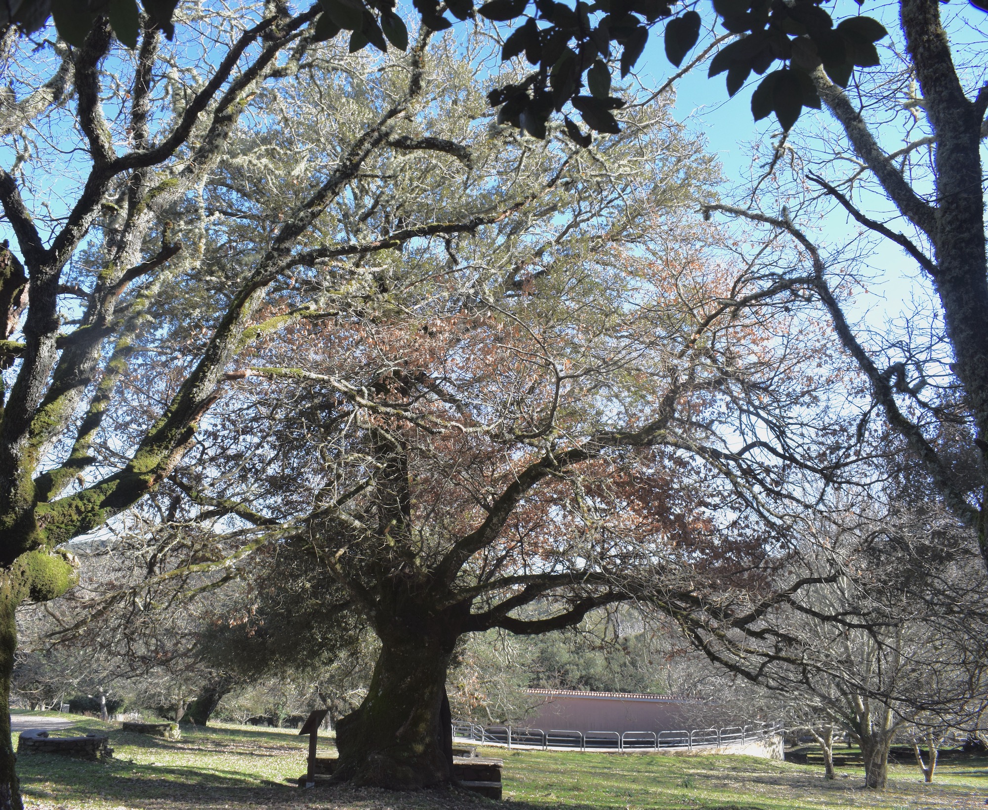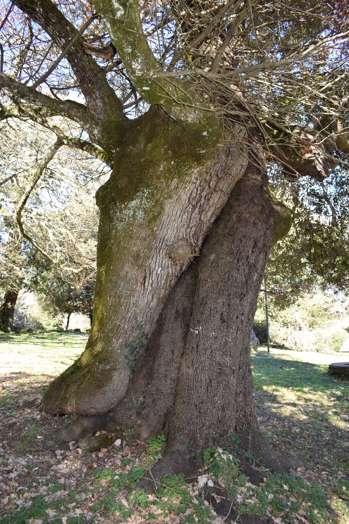 Maestoso esemplare, fra i tanti presenti nel parco, di roverella. La particolare caratteristica di questo albero monumentale è di essere cresciuto insieme a un altrettanto grande leccio; ora i due alberi crescono "abbracciati".