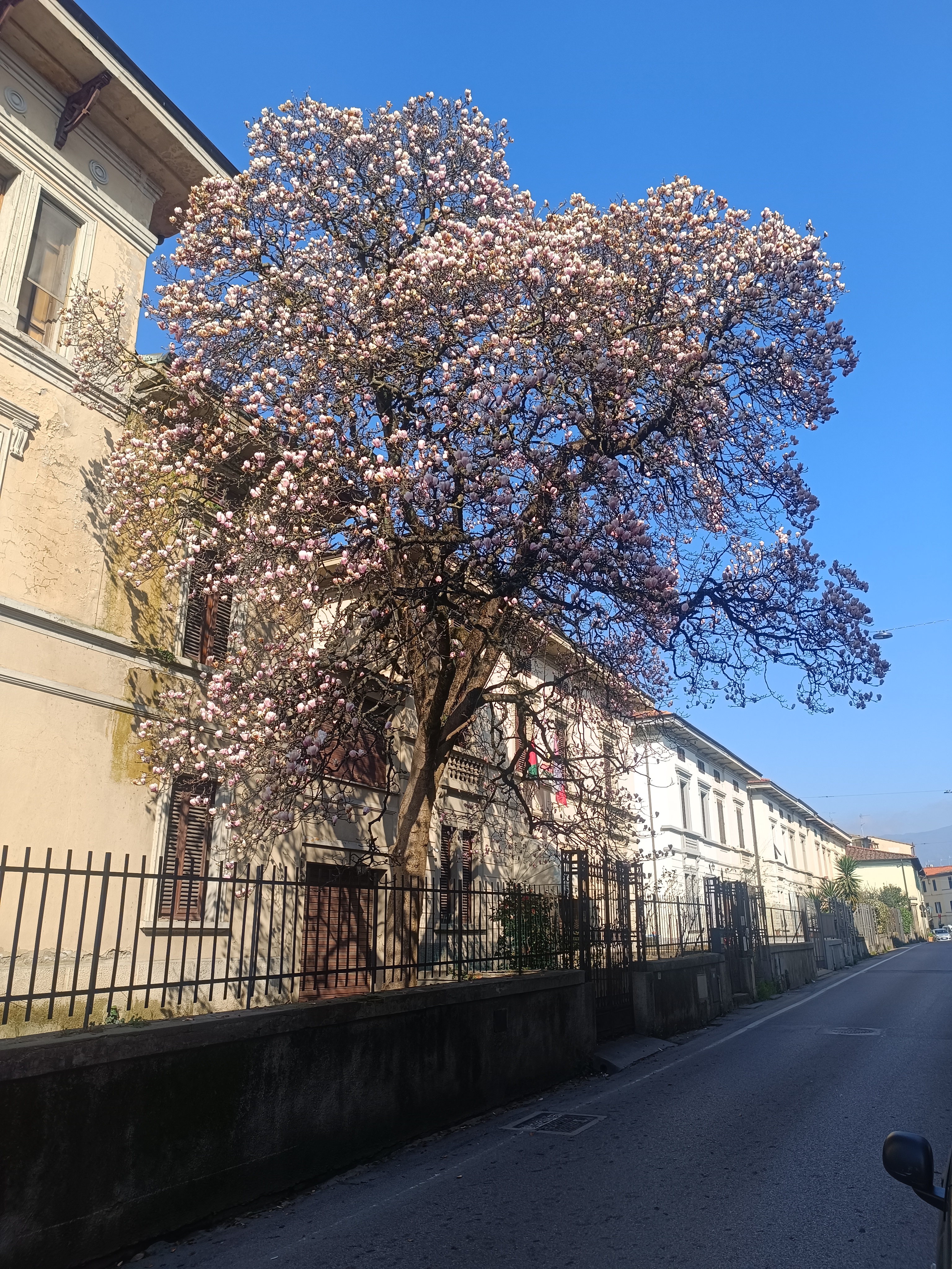 Situata in uno stretto giardino del villino Desii a Pistoia, il villino è all'asta, si spera che non tocchino la grande e ampia Magnolia soulangeana, la più grande che io abbia mai visto.