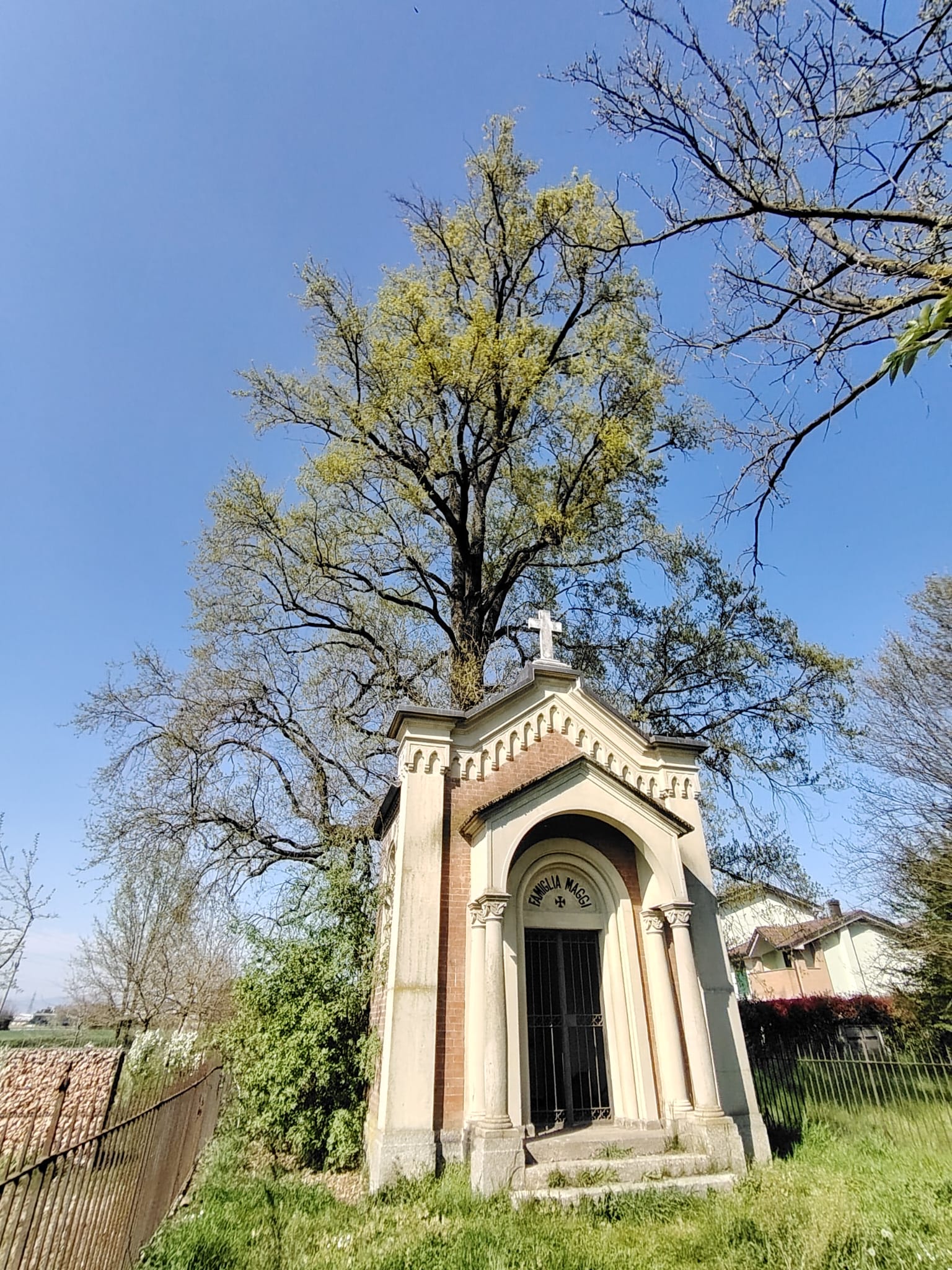 Esemplare secolare posta a nord rispetto alla cappella eretta dall' ingegner Carlo Annibale Maggi nel 1901.