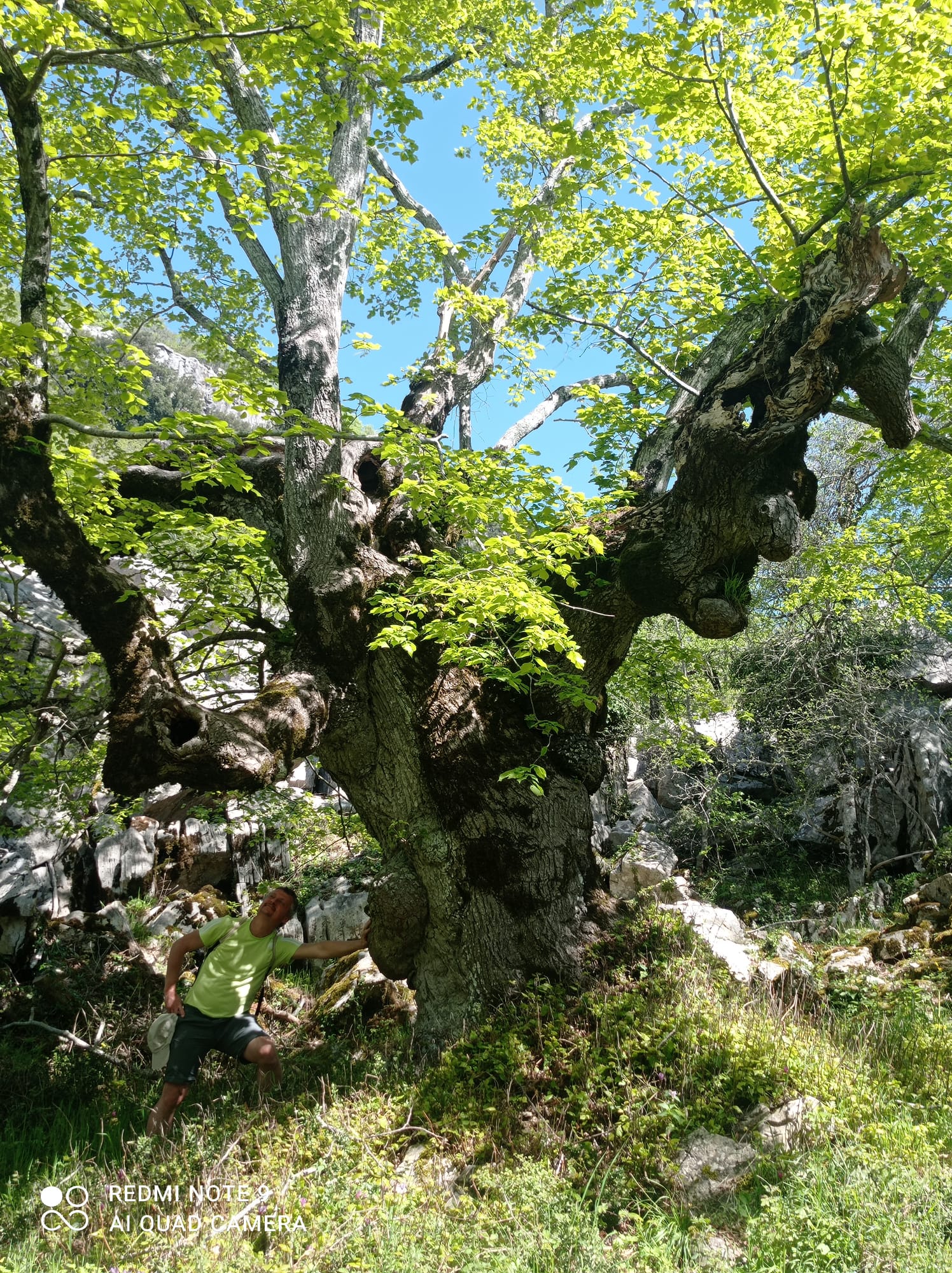 Bellissimo albero dal portamento espanso e dal fusto contorto. Una branca di profilo assume la somiglianza di un volto di strega. Sul fusto invece (una protuberanza che rende più difficile la misura della circonferenza) appare la testa di una pecora. Albero magico.