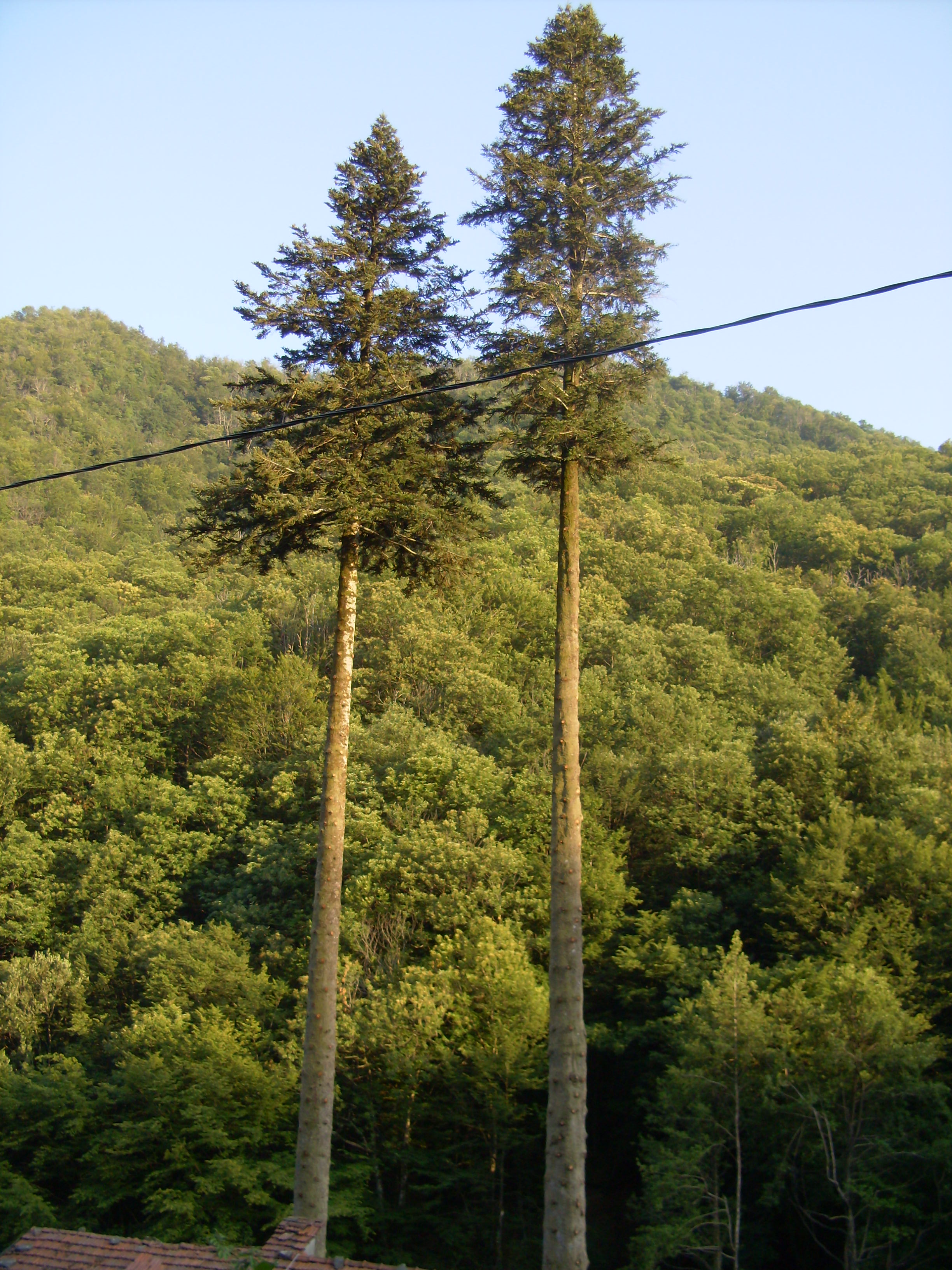Si tratta di una coppia di due bellissimi abeti dotati di notevole altezza e circonferenza. Inseriti in un rimboschimento di abete bianco presso il vecchio Albergo "Basso Matanna", nel 2009/2010 furono sottoposti ad un drastico intervento di potatura consistente nell'eliminazione di tutti i rami fino ad un'altezza di circa una trentina di metri. Tale sconsiderato intervento che fino ad oggi non ha tuttavia influito sulla vitalità dei due alberi, fu accompagnato anche dal taglio di tutti gli altri esemplari intorno all'edificio alcuni dei quali presentavano discrete dimensioni.