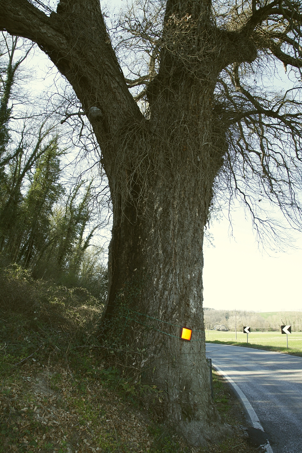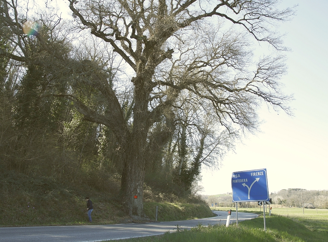 Grande Quercia, già citata da Valido Capodarca nel libro "Toscana - cento alberi da salvare" (Vallecchi Firenze 1983) e nel libro "Gli Alberi monumentali della Toscana" (Edifir Firenze, 2003) in quest'ultimo indicata erroneamente in località La Stregaia. La pianta è radicata sulla scarpata stradale della SP 15 fra Molino d'Era e San Cipriano, la si incontra, percorrendo la provinciale in direzione Volterra, sulla destra, a circa 300 metri dopo il bivio in località Molino d'Era. Essendo il tronco a brevissima distanza dalla carreggiata stradale vi sono stati apposti alcuni catarifrangenti onde evitare collisioni con gli automezzi che percorrono la via.