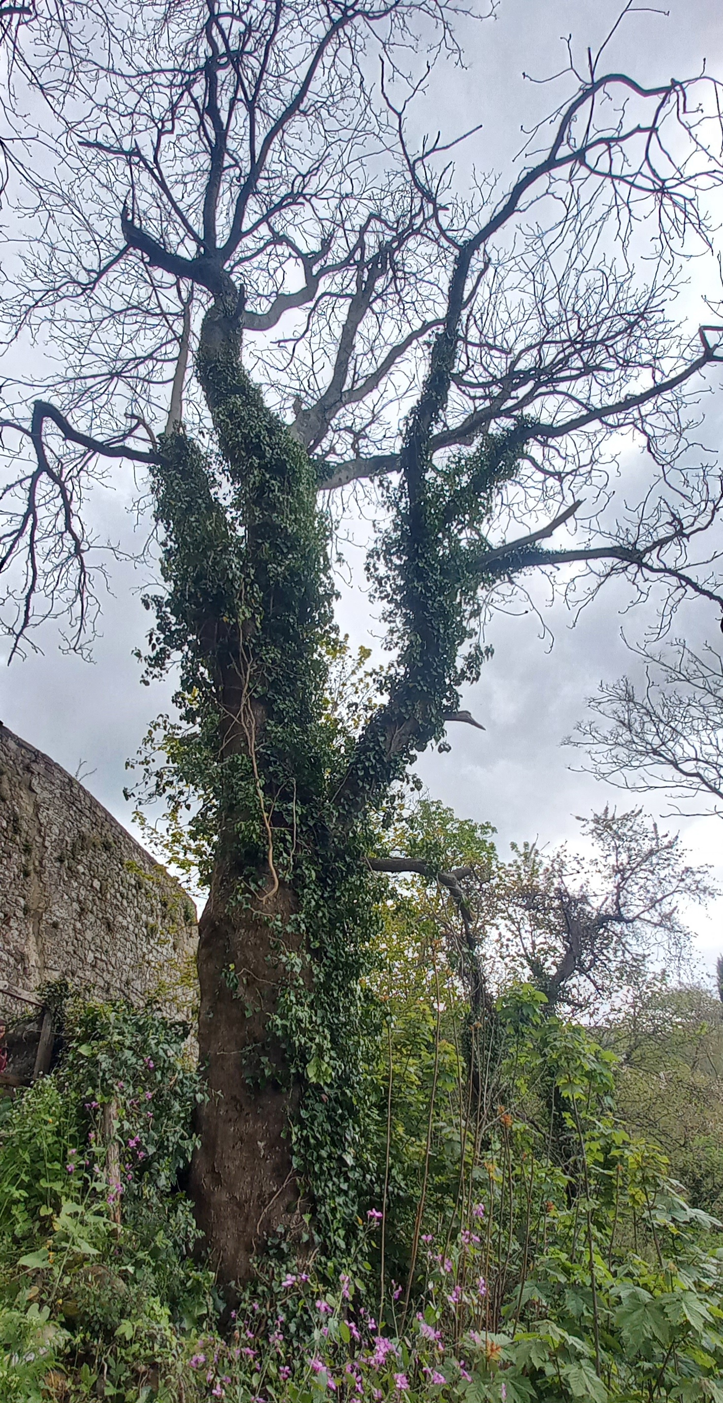 Un'indesiderabile molto grande. Avvolto da edera ,esemplare notevole addossato ad un muro presso l'eremo di Vivo d'Orcia nel parco del prestigioso palazzo Cervini.