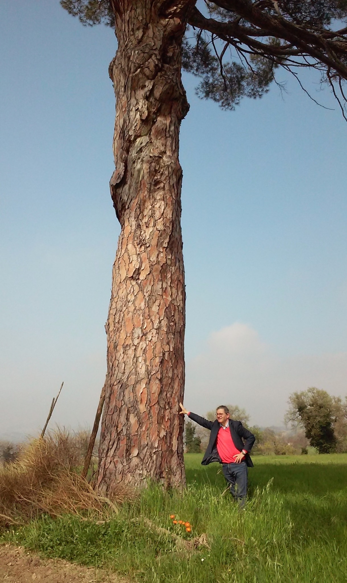 Monumentale pino domestico fra i maggiori, se non il leader della specie nella Regione Marche. La pianta è sottoposta a vincolo in virtù del Censimento regionale degli Alberi e Formazioni Vegetali Monumentali delle Marche effettuato dall'ex Corpo Forestale dello Stato.