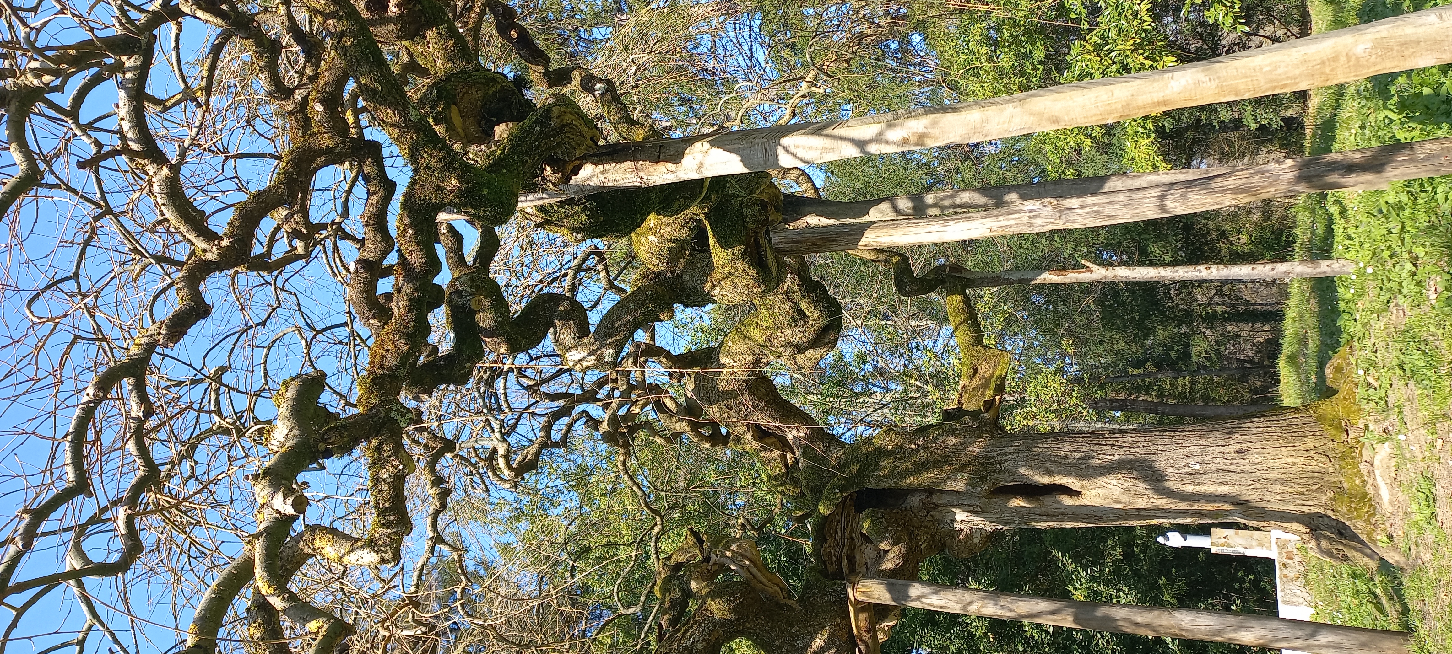 Fusto con grossa cavità, presenza di pali per sostenere le branche principali.