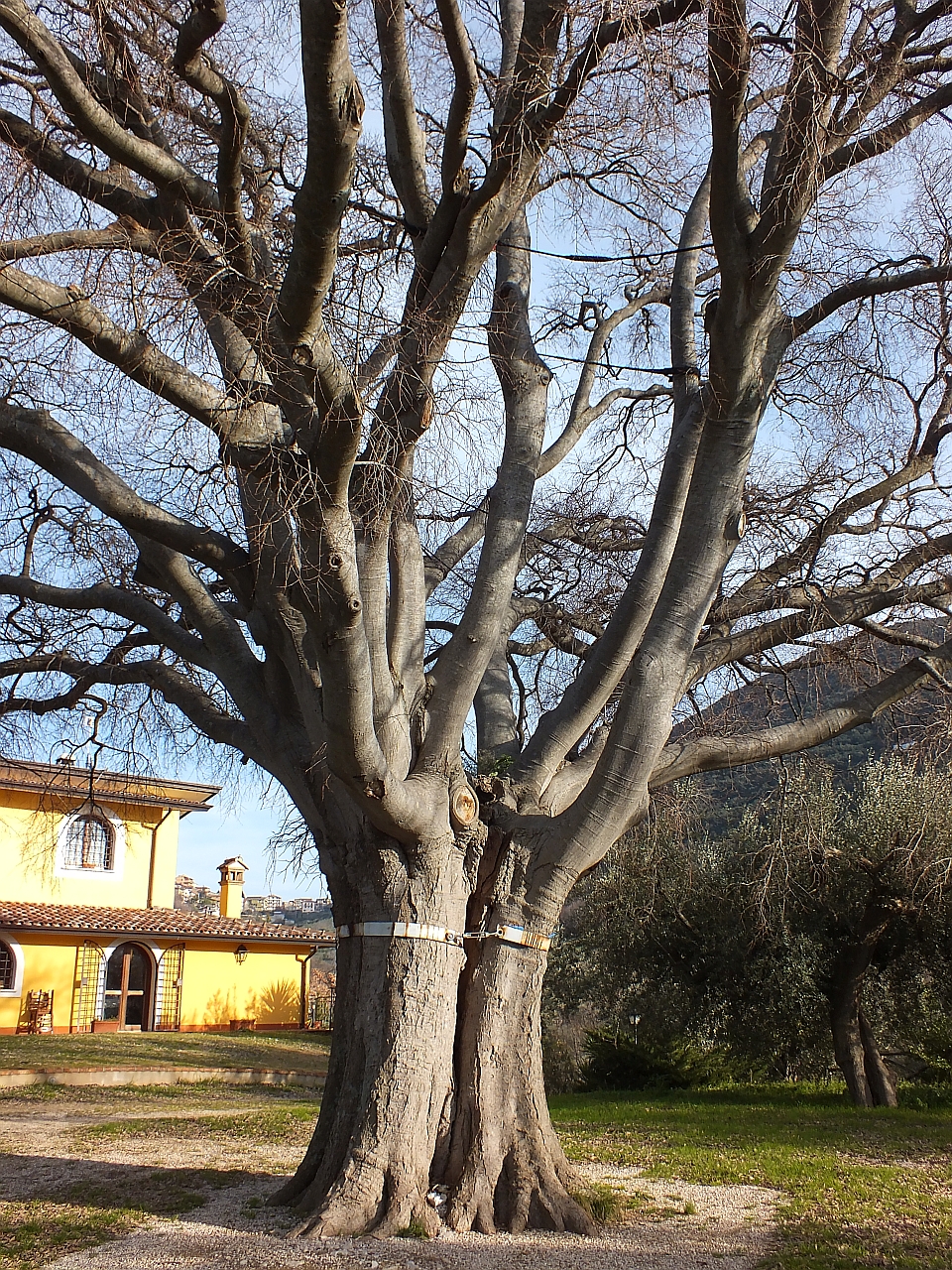Eccezionale esemplare di bagolaro, purtroppo stroncato da una tromba d'aria mentre era in allestimento il sito, per cui le misure riportate e le immagini si riferiscono a com'era la pianta prima dell'evento che ne ha determinato un forte danneggiamento,con la perdita di due parti su tre che lo componevano.